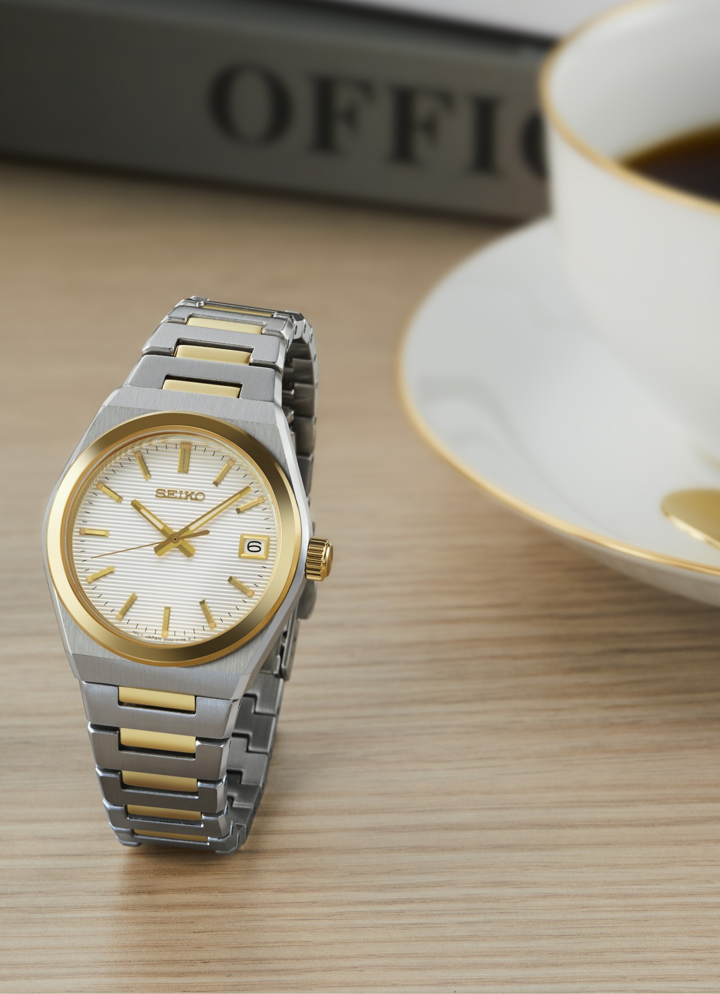 Dámské bateriové hodinky Seiko Quartz SUR578P1 na ocelovém náramku v kombinaci brusu a lesku s částečnou PVD úpravou v barvě zlata s překlápěcí sponou. Pouzdro z nerezové oceli má průměr 34 milimetrů a lunetu s korunkou opatřené zlatou PVD úpravou. Tyto univerzální hodinky v klasickém designu využijete pro každodenní nošení. Bílý strukturovaný číselník s indikací data na třetí hodině je chráněn odolným safírovým sklem. Aplikované hodinové indexy jsou stejně jako ručky pokryty luminiscenčním nátěrem LumiBrite, který garantuje perfektní čitelnost za zhoršených světelných podmínek. Pohon hodinek zajišťuje spolehlivý quartzový strojek 6N42. S vodotěsností 10 ATM jsou hodinky vhodné pro koupání nebo šnorchlování.