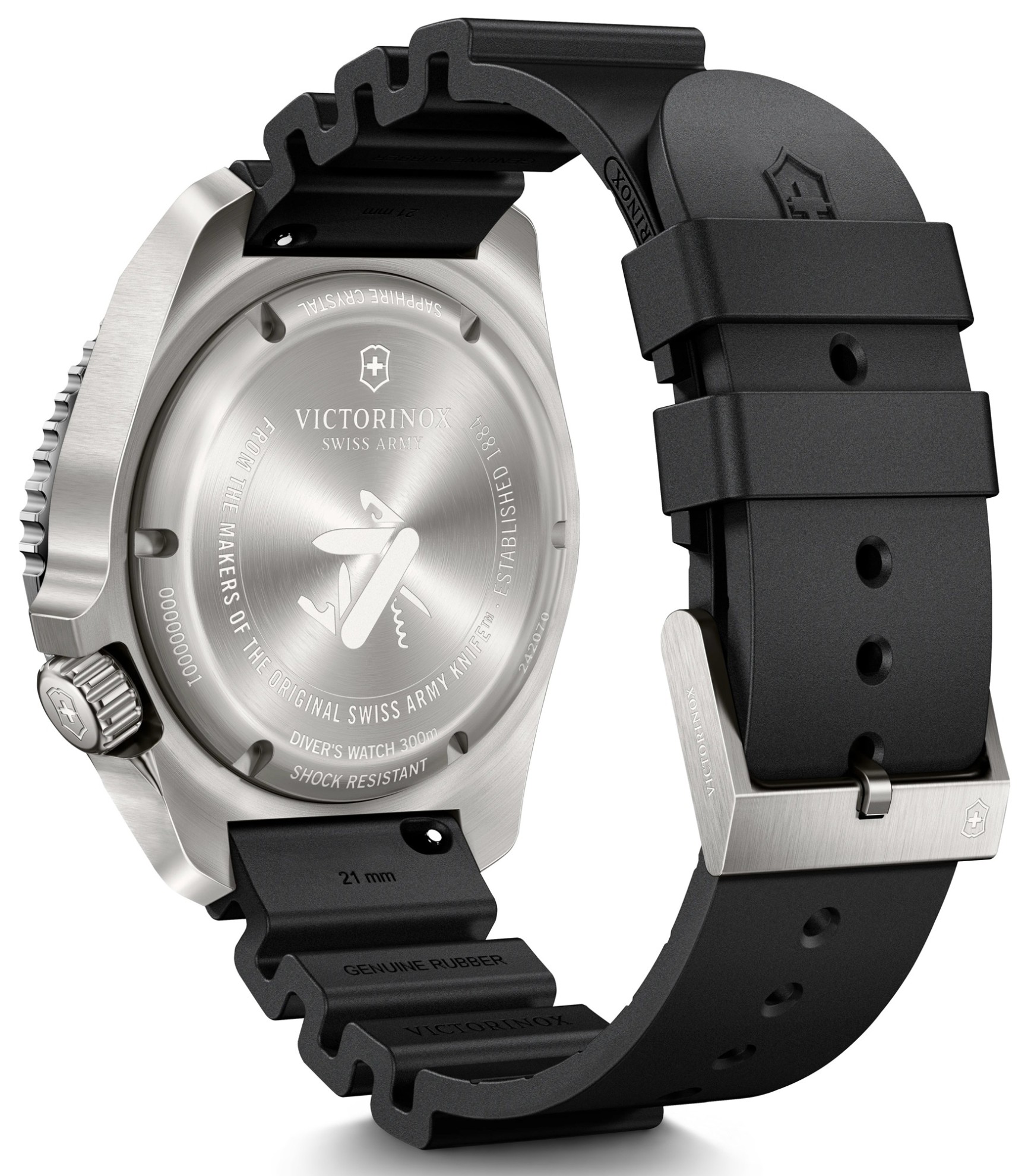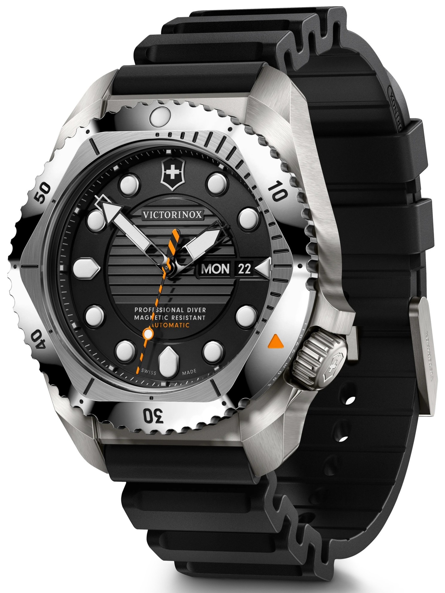 Hodinky Victorinox Dive Pro jsou určeny pro všechny, kteří hledají kvalitu, přesnost a dokonalost v každodenním životě. Každé z těchto potápěčských hodinek s certifikací ISO 6425 jsou testovány na voděodolnost 300 metrů a odolávají písku, nečistotám, nárazům a vibracím. Jak vyžadují potápěčské normy, odolnost proti nárazům a anti-magnetická ochrana zabraňují nepřesnostem v měření času a zajišťují absolutní přesnost a spolehlivost. Tato výjimečná odolnost a výkonnost je čistě výsledkem mistrovského řemeslného zpracování tvůrců. Jasné linie, výrazné tvary a inovativní kombinace materiálů charakterizují autentický design značky. Victorinox Dive Pro mají inovativní systém pro výměnu pásků bez použití nářadí a jsou k dispozici nejen v různých atraktivních materiálových a barevných kombinacích, ale také se dvěma typy strojků: osvědčeným a spolehlivým quartzovým strojkem Ronda 715 a novým automatickým strojkem Sellita SW 220-1. Ten má 38hodinovou rezervu chodu a ukazatel dne a data s rychlým nastavením. Přehledný číselník disponuje výraznými bodovými indexy a ručkami, které svítí dvěma barvami švýcarské technologie Super-LumiNova® - modrou pro potápění a zelenou pro ukazatele času.