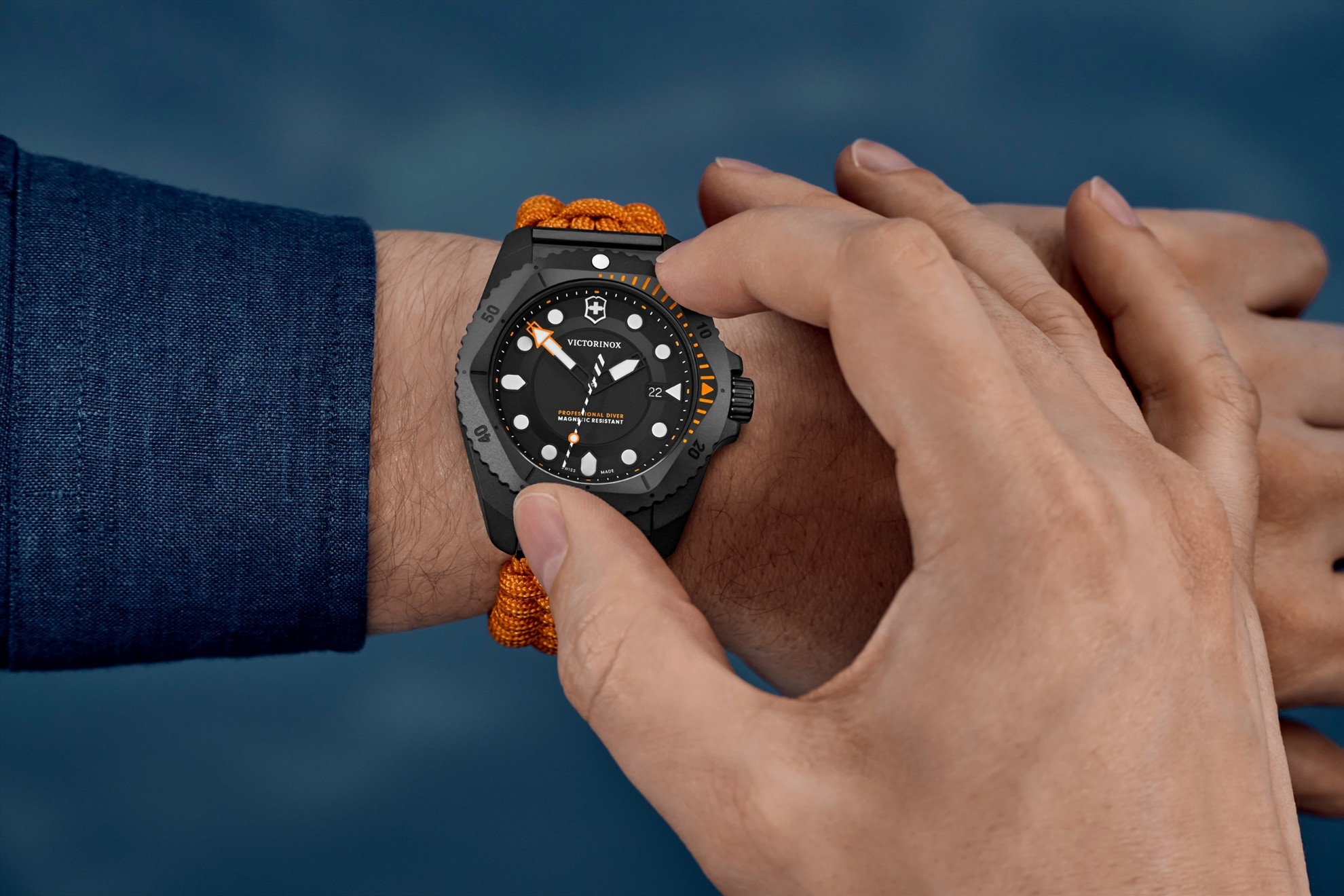 Hodinky Victorinox Dive Pro jsou určeny pro všechny, kteří hledají kvalitu, přesnost a dokonalost v každodenním životě. Každé z těchto potápěčských hodinek s certifikací ISO 6425 jsou testovány na voděodolnost 300 metrů a odolávají písku, nečistotám, nárazům a vibracím. Jak vyžadují potápěčské normy, odolnost proti nárazům a anti-magnetická ochrana zabraňují nepřesnostem v měření času a zajišťují absolutní přesnost a spolehlivost. Tato výjimečná odolnost a výkonnost je čistě výsledkem mistrovského řemeslného zpracování tvůrců. Jasné linie, výrazné tvary a inovativní kombinace materiálů charakterizují autentický design značky. Victorinox Dive Pro mají inovativní systém pro výměnu pásků bez použití nářadí a jsou k dispozici nejen v různých atraktivních materiálových a barevných kombinacích, ale také se dvěma typy strojků: osvědčeným a spolehlivým quartzovým strojkem Ronda 715 a novým automatickým strojkem Sellita SW 220-1. Ten má 38hodinovou rezervu chodu a ukazatel dne a data s rychlým nastavením. Přehledný číselník disponuje výraznými bodovými indexy a ručkami, které svítí dvěma barvami švýcarské technologie Super-LumiNova® - modrou pro potápění a zelenou pro ukazatele času.
