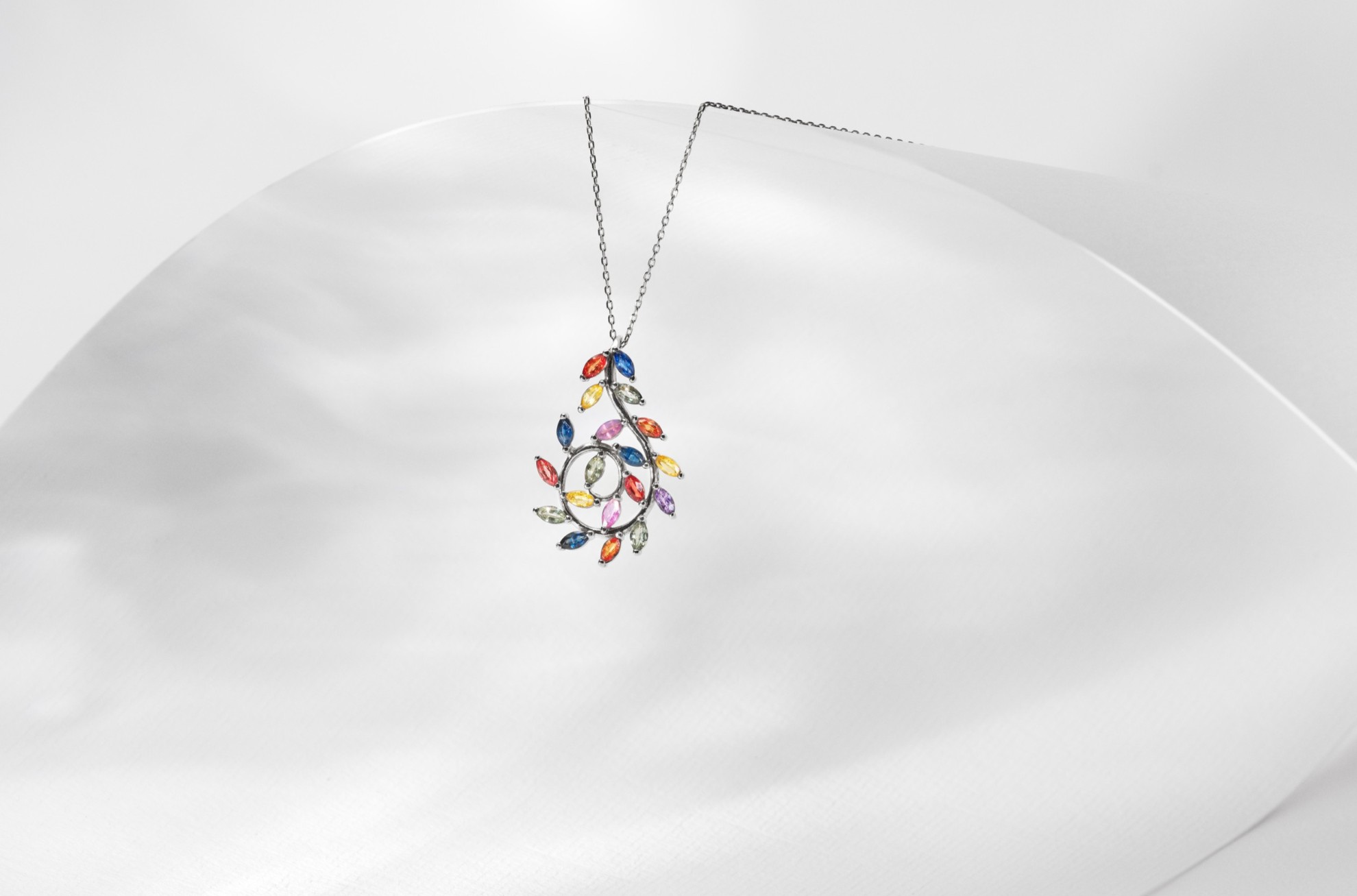Anhänger LOEE Gaia z bílého zlata s multisafíry
