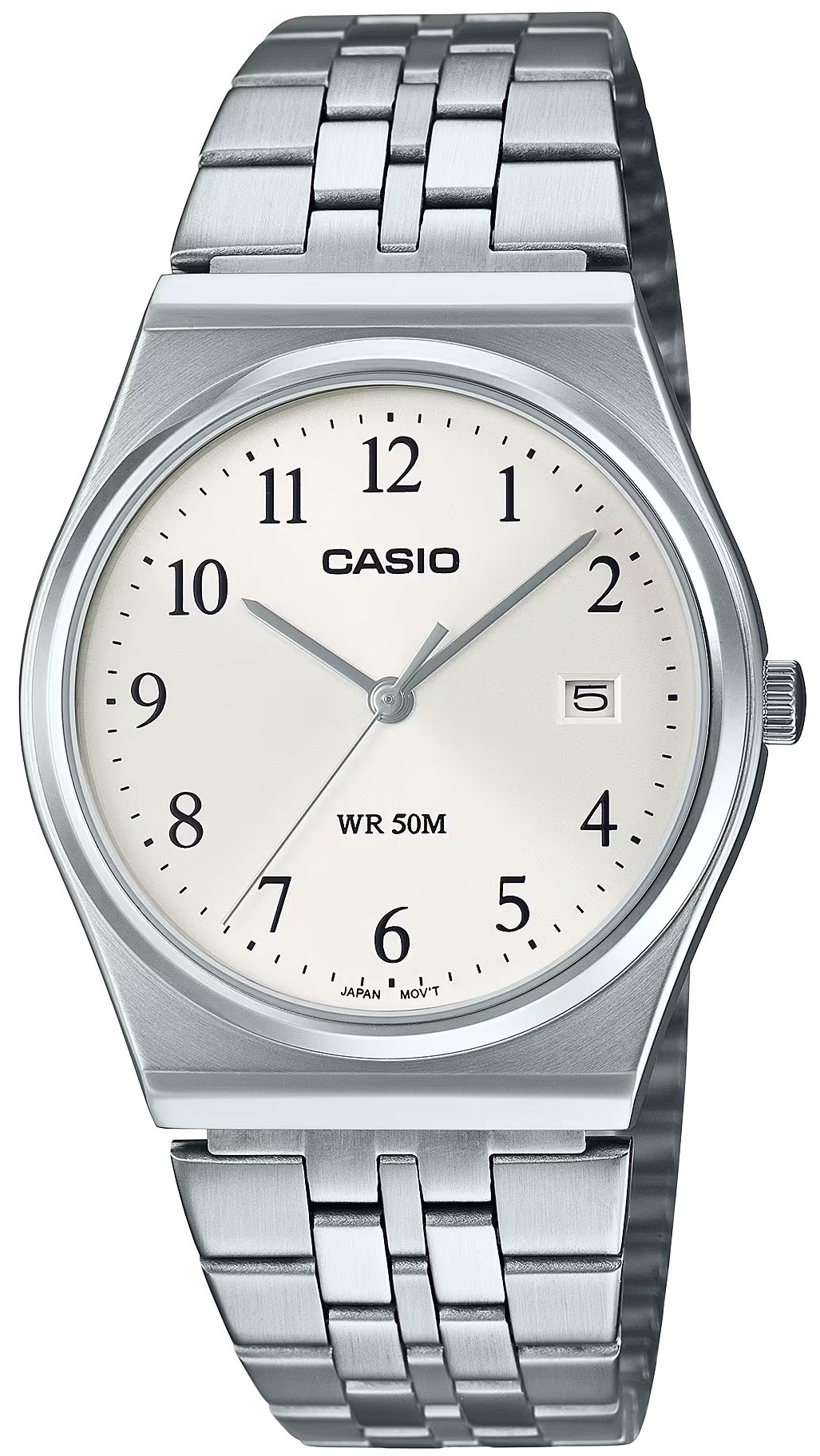 Casio Collection MTP-B145D-7BVEF sind Unisex-Quarzuhren im klassischen Design mit einem fünfreihigen Edelstahlarmband mit Faltschließe und einem Edelstahlgehäuse mit einem Durchmesser von 35 Millimetern. Das silberne Zifferblatt mit Sonnenschliff-Effekt und Datumsanzeige auf der Drei-Uhr-Position wird durch ein Mineralglas geschützt. Die Wasserdichtigkeit der Uhr beträgt 5 ATM und ist somit gegen Regen und beim Duschen geschützt.