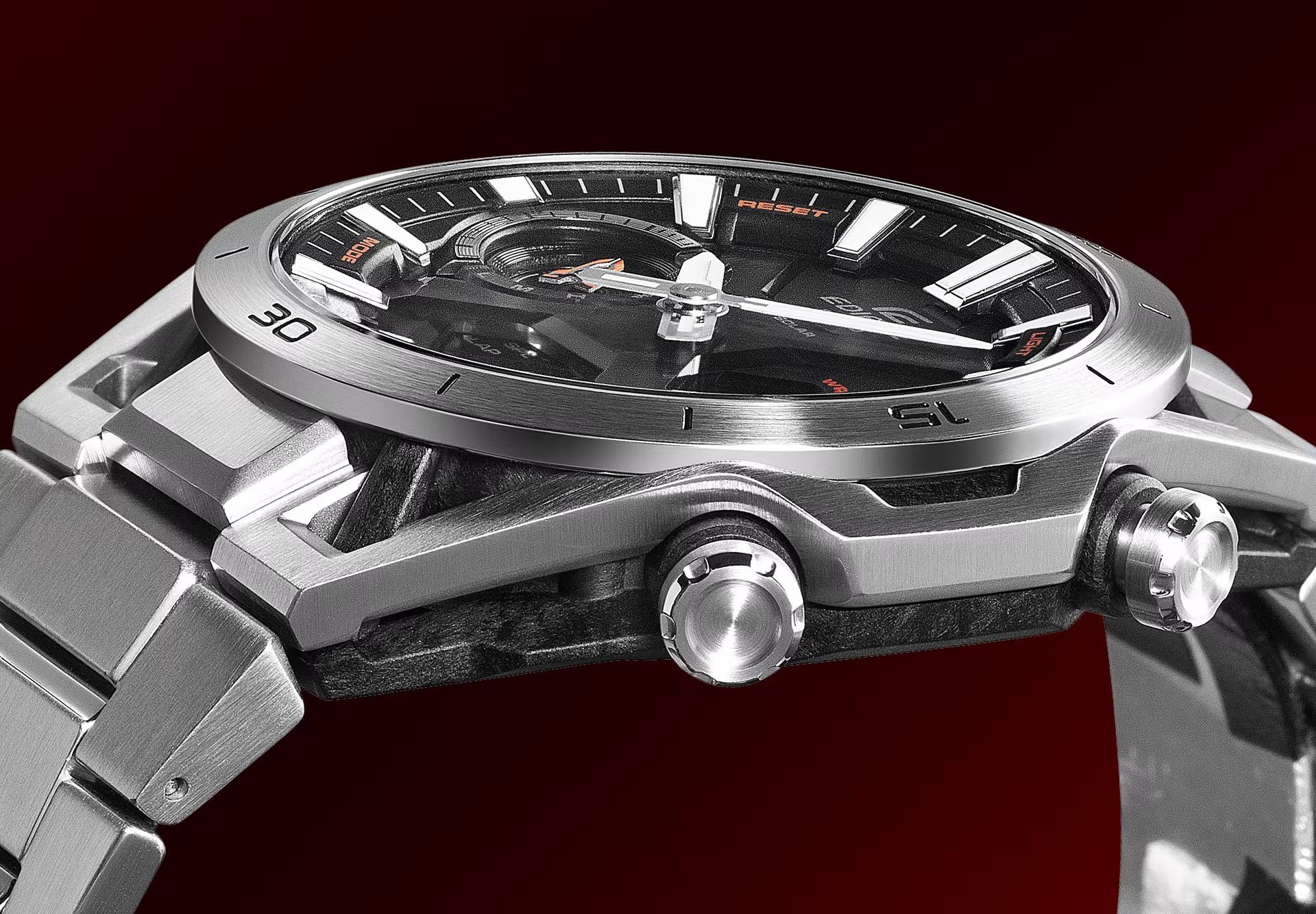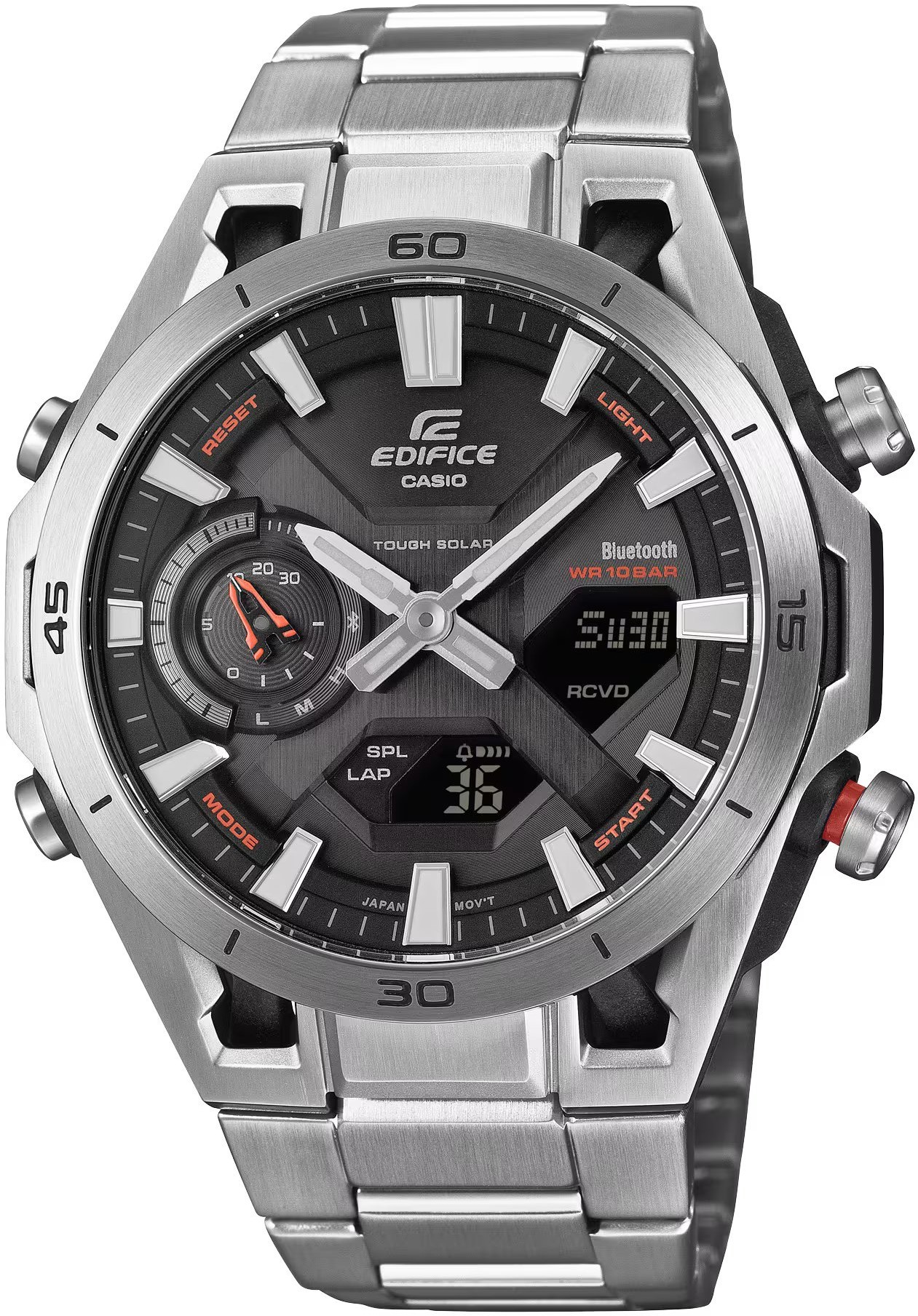 Die Casio Edifice Kollektion umfasst sportlich orientierte Uhren mit einem Edelstahlgehäuse, einer Wasserdichtigkeit von 100 Metern und einem klassischen Quarzwerk mit einer Batterielaufzeit von etwa drei Jahren oder einem Solarantrieb, bei dem der Benutzer die Batterielaufzeit im Grunde nicht beachten muss. Ausgewählte Modelle ergänzen die analoge Zeitanzeige um digitale Anzeigen, die das Funktionsangebot der Uhren erheblich erweitern. Bei einigen Modellen fehlt auch nicht die Bluetooth-Unterstützung für eine einfache Einstellung der Uhr und die Zeitsynchronisation über die mobile App. Diese ermöglicht auch die Verfolgung von Daten aus dem Chronographen der Uhr. In der Edifice-Kollektion erscheinen auch Modelle, die vom Motorsport inspiriert sind.