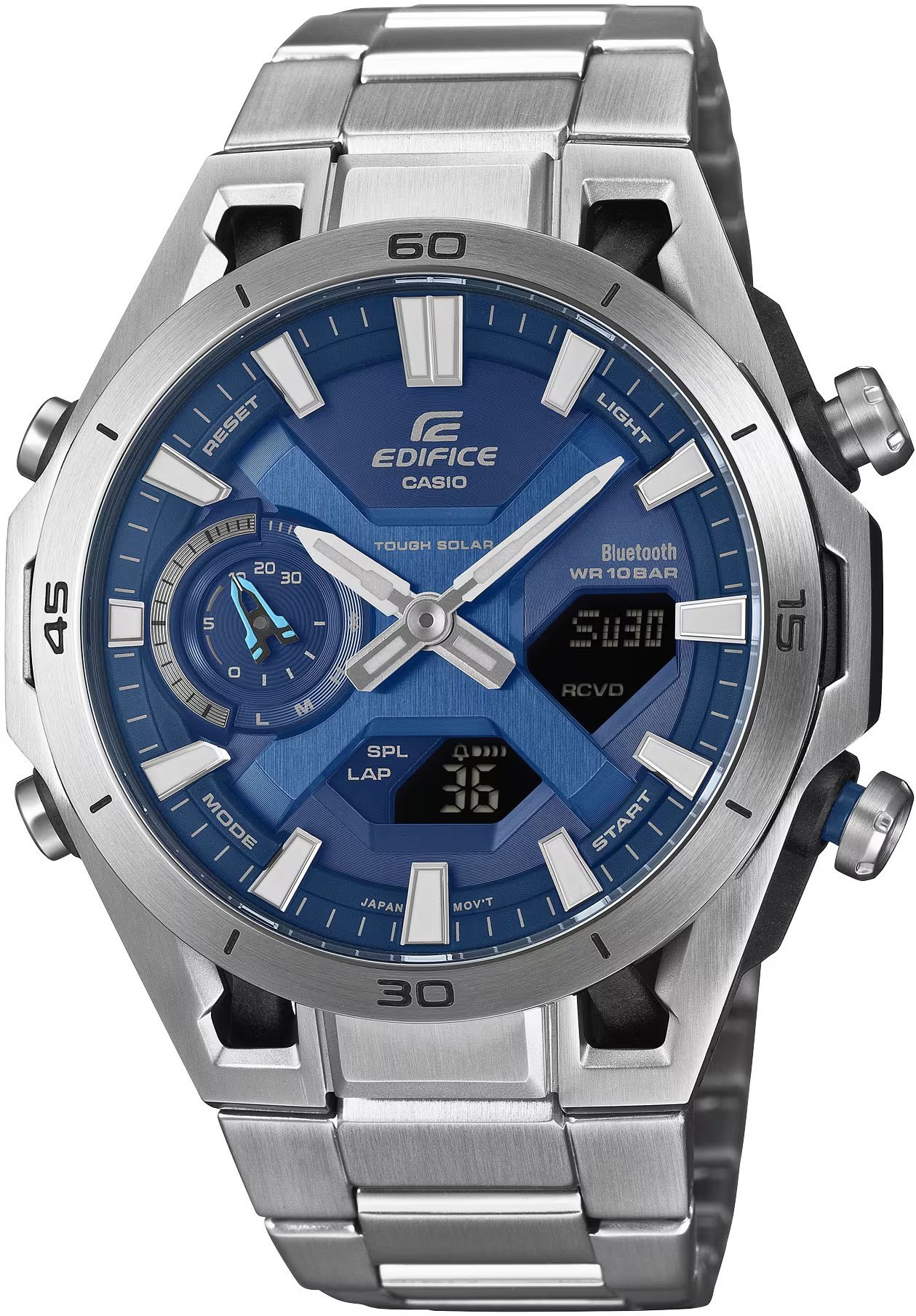 Die Casio Edifice Kollektion umfasst sportlich orientierte Uhren mit einem Edelstahlgehäuse, einer Wasserdichtigkeit von 100 Metern und einem klassischen Quarzwerk mit einer Batterielaufzeit von etwa drei Jahren oder einem Solarantrieb, bei dem der Benutzer die Batterielaufzeit im Grunde nicht beachten muss. Ausgewählte Modelle ergänzen die analoge Zeitanzeige um digitale Anzeigen, die das Funktionsangebot der Uhren erheblich erweitern. Bei einigen Modellen fehlt auch nicht die Bluetooth-Unterstützung für eine einfache Einstellung der Uhr und die Zeitsynchronisation über die mobile App. Diese ermöglicht auch die Verfolgung von Daten aus dem Chronographen der Uhr. In der Edifice-Kollektion erscheinen auch Modelle, die vom Motorsport inspiriert sind.