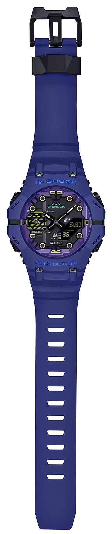 Casio G-Shock Carbon Core Guard GA-B001CBR-2AER sind sportliche Herren-Batterieuhren mit einem blauen Harzarmband mit Dornschließe. Das Gehäuse aus Epoxidharz und Karbon hat einen Durchmesser von 46 Millimetern und einen Edelstahlboden. Das schwarze Zifferblatt mit digitalem Display und doppelter LED-Hintergrundbeleuchtung wird durch ein widerstandsfähiges Mineralglas geschützt. Der Antrieb der Uhr erfolgt durch ein Quarzwerk 5690 mit einer Genauigkeit von ±15 Sekunden pro Monat. Die Uhr verfügt über viele Funktionen, einschließlich eines Kalenders mit Datums- und Wochentagsanzeige, Wecker, Stoppuhr, Timer, Weltzeit und 24-Stunden-Zeitformat. Die Uhr kann auch über Bluetooth mit dem Telefon gekoppelt werden, was zusätzliche Funktionen wie Zeitsynchronisation, Telefonsuche usw. bietet. Die Uhr ist stoßfest und mit einer Wasserdichtigkeit von 20 ATM für das Tauchen in großen Tiefen geeignet.