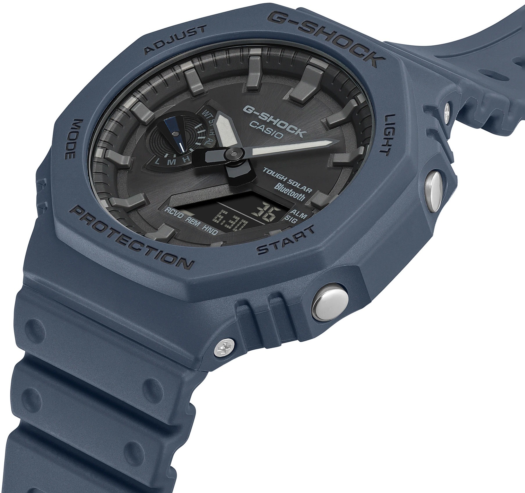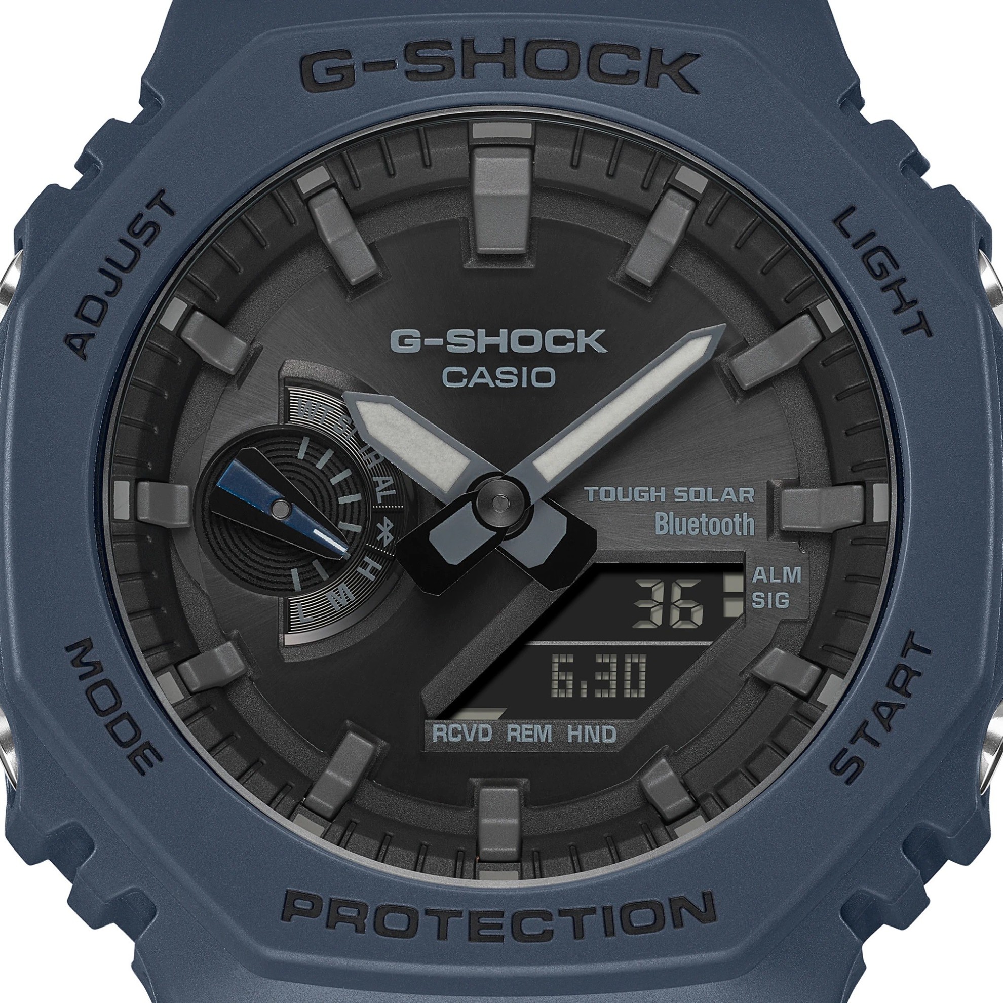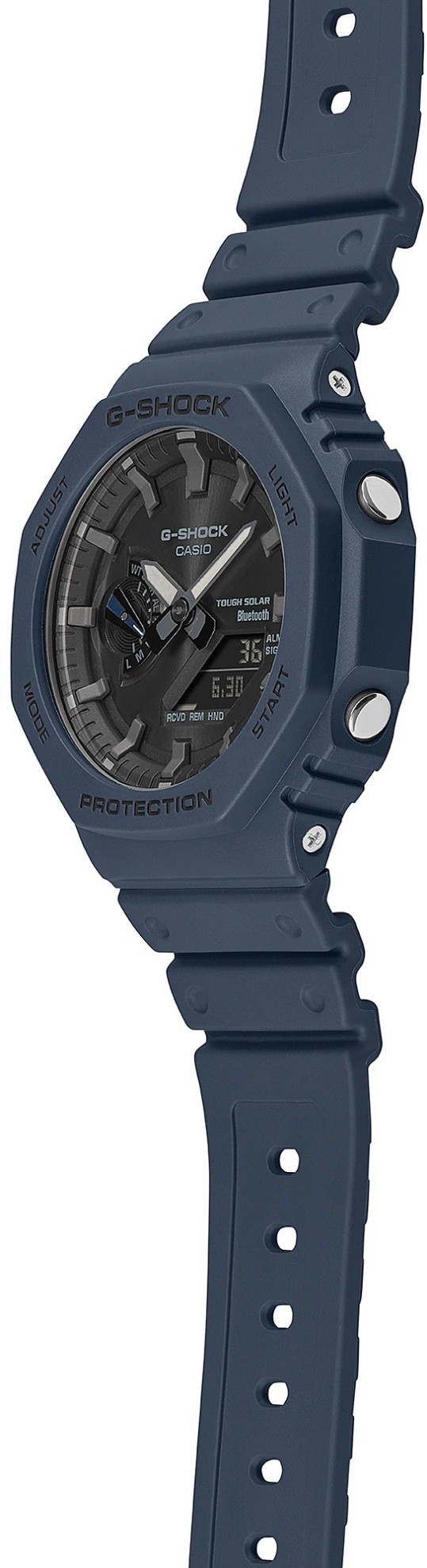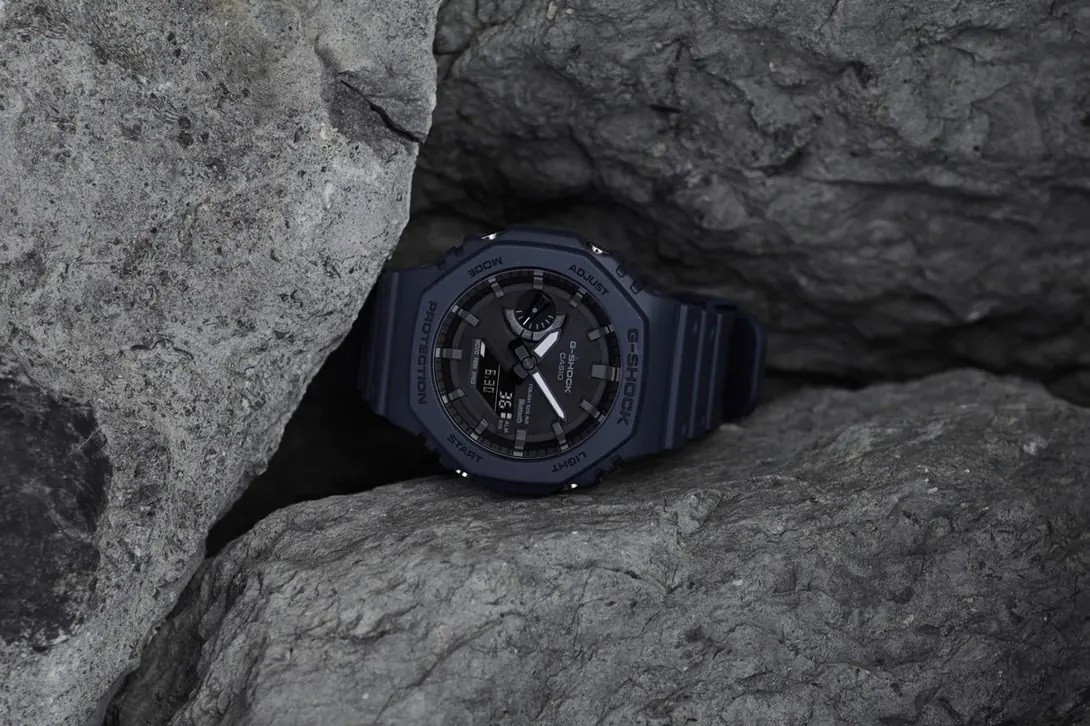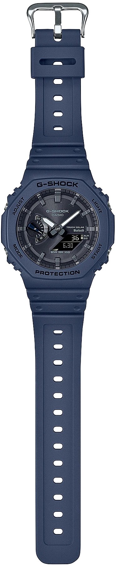 Die G-Shock GA-B2100 Serie stellt die dünnsten Uhren der aktuellen G-Shock Modelle dar, ihr Gehäuse mit einem Durchmesser von 45,4 Millimetern aus Harz hat nämlich eine Höhe von nur 11,9 Millimetern. Das Gehäuse verfügt über ein neues Design der Lünette des ursprünglichen G-Shock DW-5000C Modells aus dem Jahr 1983, auf das diese Serie aufbaut. Neben dem neuen Design unterscheidet sich diese Serie vom DW-5000C Modell durch die neue Konstruktion des Carbon Core Guard, also die Verstärkung des Gehäuses mit Kohlefasern, die eine hohe Widerstandsfähigkeit des Gehäuses und gleichzeitig ein geringes Gewicht der Uhr – nur 52 Gramm – gewährleistet. Das traditionell geformte Armband mit Dornschließe ist aus Harz mit matter Oberfläche gefertigt. Der Betrieb der Uhr wird durch ein Uhrwerk mit Solarantrieb gewährleistet und man kann mit ihnen auch tauchen, da ihre Wasserdichtigkeit 200 Meter erreicht. Sie können auch mit einem Smartphone über Bluetooth synchronisiert werden.