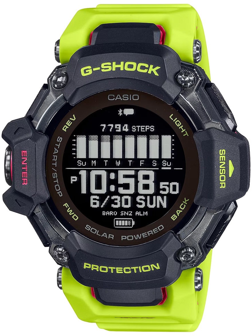 Die Sportuhr G-Shock G-Squad GBD-H2000 ermöglicht es Ihnen, Ihre sportlichen Leistungen zu überwachen und gleichzeitig Ihre Gesundheit im Blick zu behalten. Sie verfügt über eine integrierte GPS-Funktion zur Messung von Position, Entfernung und Geschwindigkeit in Echtzeit während der körperlichen Aktivität. Sie verfügt über 6 Sensoren: