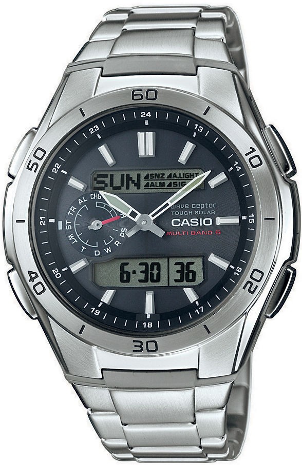 Die Wave Ceptor Uhren sind Uhren mit absolut präziser Zeit, gesteuert durch Funksignal. Was bedeutet das? Es handelt sich um Uhren, die Zeitsignale von Atomuhren empfangen können, die von Langwellen-Bodenstationen gesendet werden. In unserem Fall ist der nächstgelegene Sender Frankfurt am Main, dessen Signal bis in die Ukraine reicht. Weitere Sender befinden sich in Großbritannien, den USA, Japan (2x) und China (Multiband 5 Modelle können das Signal dieses Senders nicht empfangen). Natürlich müssen Sie sich keine Sorgen machen, dass Ihre Uhr nicht funktioniert, wenn Sie sich nicht in Reichweite eines der genannten Sender befinden. Sie werden einfach nicht mehr synchronisiert und laufen im klassischen Modus mit einer Abweichung von einigen Sekunden pro Monat.