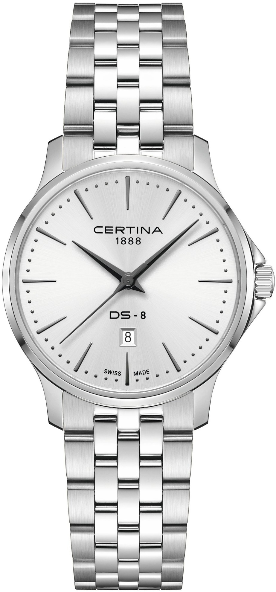Die DS-8 Kollektion ist eine vielseitige und preisgünstige Uhrenreihe der Marke Certina. Sie bietet Modelle in verschiedenen Stilen mit Gehäusen aus Edelstahl, mit PVD-Beschichtung und aus Titan, die sich sowohl für den täglichen Gebrauch als auch für gesellschaftliche Anlässe eignen. Die Modelle der DS-8 Reihe verwenden präzise Schweizer Quarzwerke oder ETA Powermatic 80 Werke, die eine Gangreserve von 80 Stunden bieten. Bei allen ist Wasserdichtigkeit von 100 Metern und ein Saphirglas selbstverständlich.