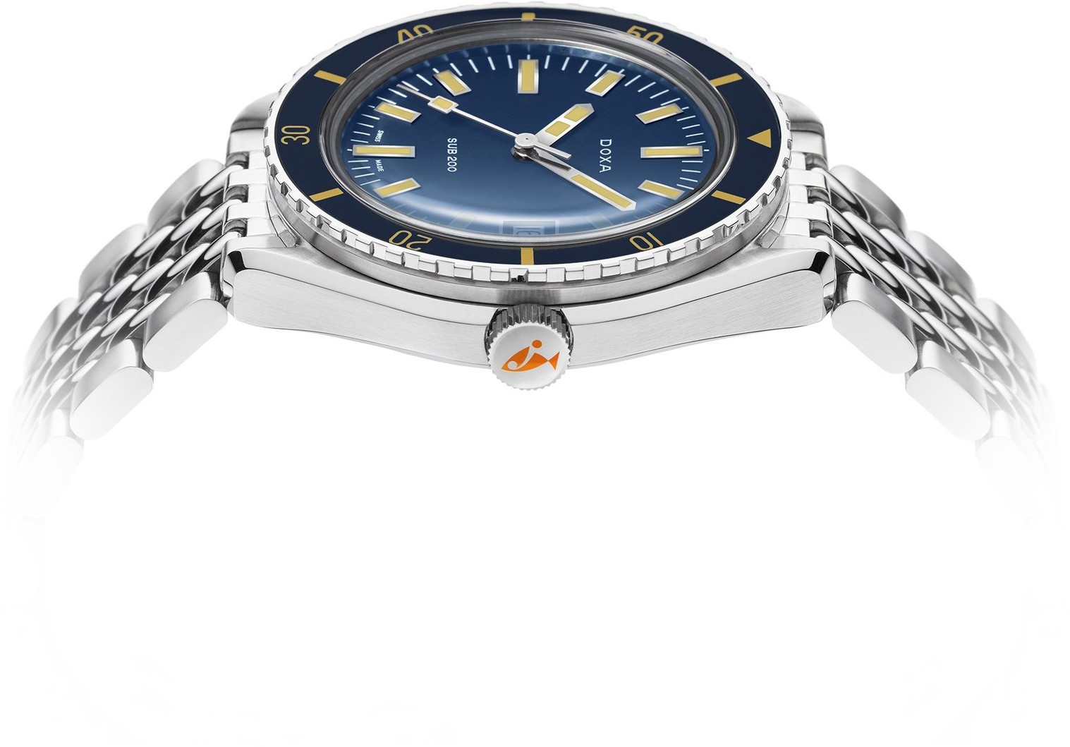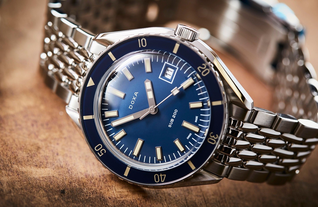 Doxa SUB 200 ist eine junge Modellreihe der Marke, die Firma führte sie im Jahr 2019 als eines der Einstiegsmodelle in die Welt der Taucheruhren ein. Es handelt sich um ein Modell mit klassischem rundem Gehäuse aus Edelstahl (316L), dem eine Reihe typischer Designelemente der Marke Doxa nicht fehlen. Dazu gehören beispielsweise die Lünette mit charakteristischem Relief am Rand, eine auffällige Palette von sieben Farben, einschließlich des ikonischen Orange, auffällige Zeiger und die reichhaltige Nutzung von leuchtenden Elementen. Das Modell Doxa SUB 200 verfügt über eine Wasserbeständigkeit bis zu 200 Metern und ist auf einem Stahlarmband oder einem Gummiband in der Farbe des Zifferblatts erhältlich. Interessierte können in der SUB 200-Reihe aus klassischen Modellen mit einem Gehäusedurchmesser von 42 Millimetern oder einem Paar Chronographen C-Graph und C-Graph II wählen. Während die C-Graph-Modelle einen Gehäusedurchmesser von 45 Millimetern haben, hat der C-Graph II einen traditionelleren Durchmesser von 42 Millimetern.
