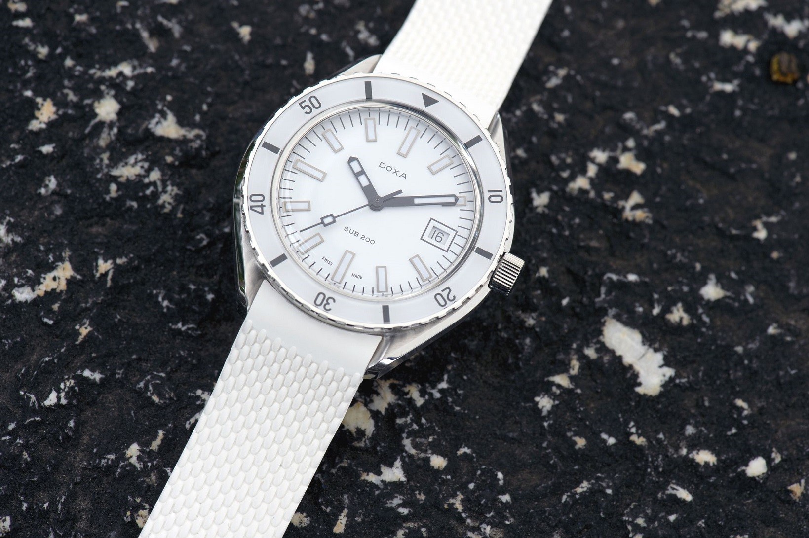 Doxa SUB 200 ist eine junge Modellreihe der Marke, die Firma führte sie im Jahr 2019 als eines der Einstiegsmodelle in die Welt der Taucheruhren ein. Es handelt sich um ein Modell mit klassischem rundem Gehäuse aus Edelstahl (316L), dem eine Reihe typischer Designelemente der Marke Doxa nicht fehlen. Dazu gehören beispielsweise die Lünette mit charakteristischem Relief am Rand, eine auffällige Palette von sieben Farben, einschließlich des ikonischen Orange, auffällige Zeiger und die reichhaltige Nutzung von leuchtenden Elementen. Das Modell Doxa SUB 200 verfügt über eine Wasserbeständigkeit bis zu 200 Metern und ist auf einem Stahlarmband oder einem Gummiband in der Farbe des Zifferblatts erhältlich. Interessierte können in der SUB 200-Reihe aus klassischen Modellen mit einem Gehäusedurchmesser von 42 Millimetern oder einem Paar Chronographen C-Graph und C-Graph II wählen. Während die C-Graph-Modelle einen Gehäusedurchmesser von 45 Millimetern haben, hat der C-Graph II einen traditionelleren Durchmesser von 42 Millimetern.