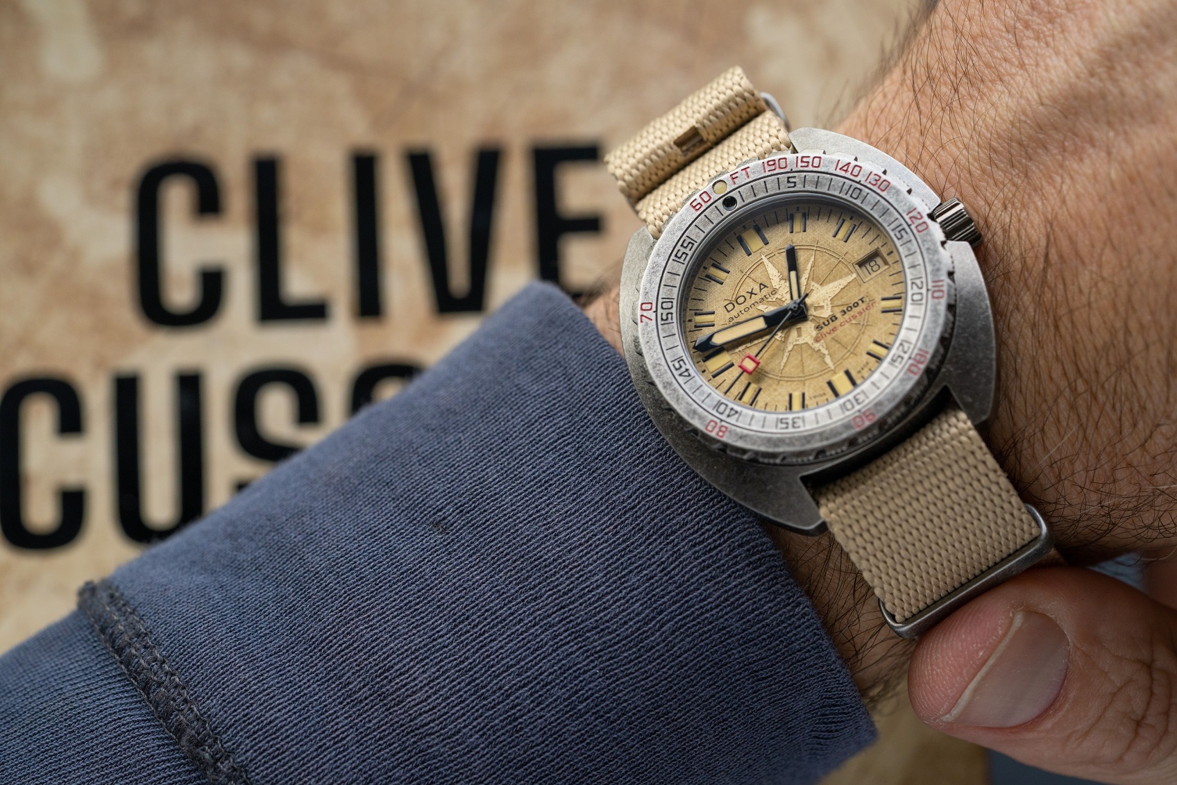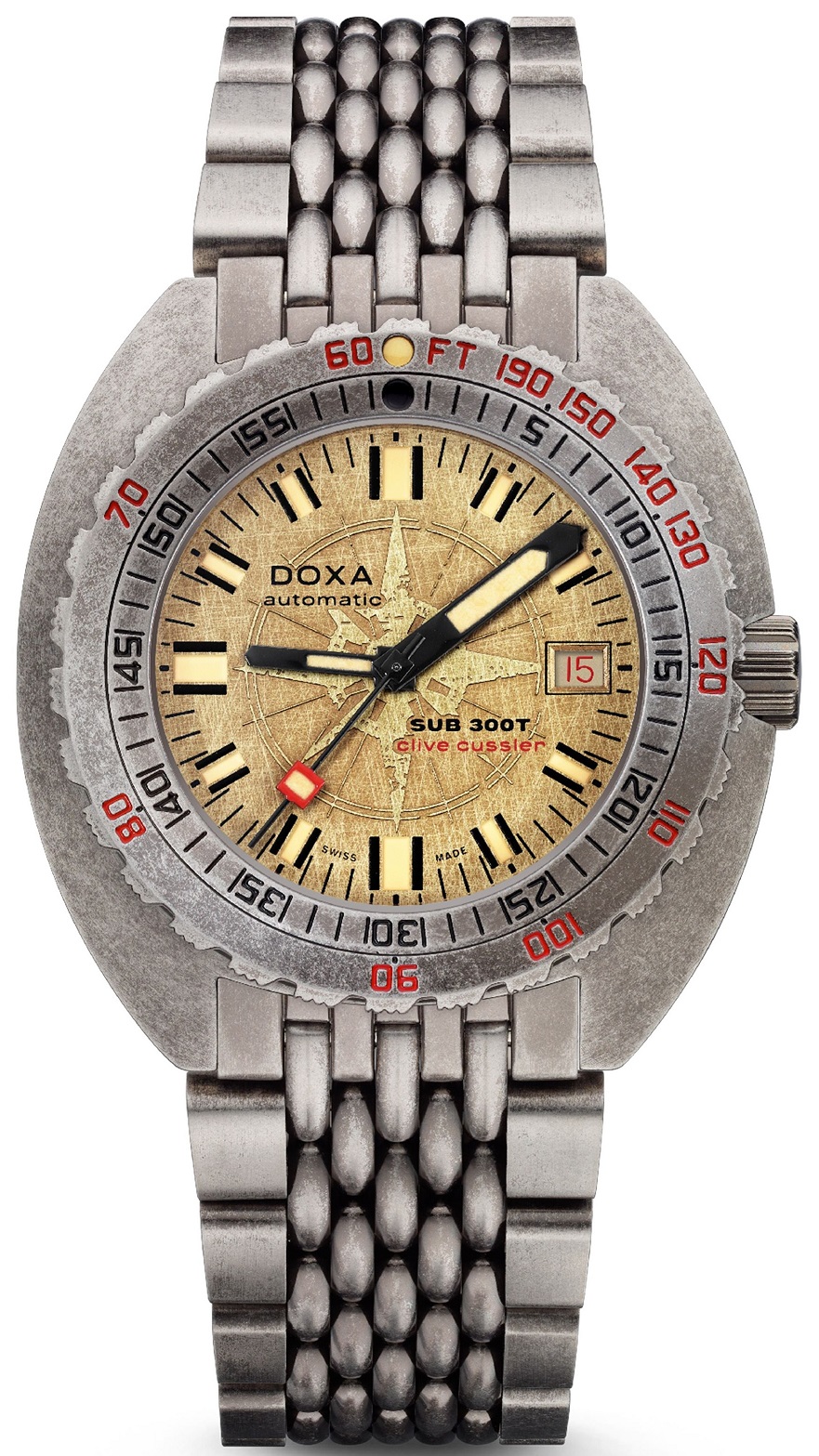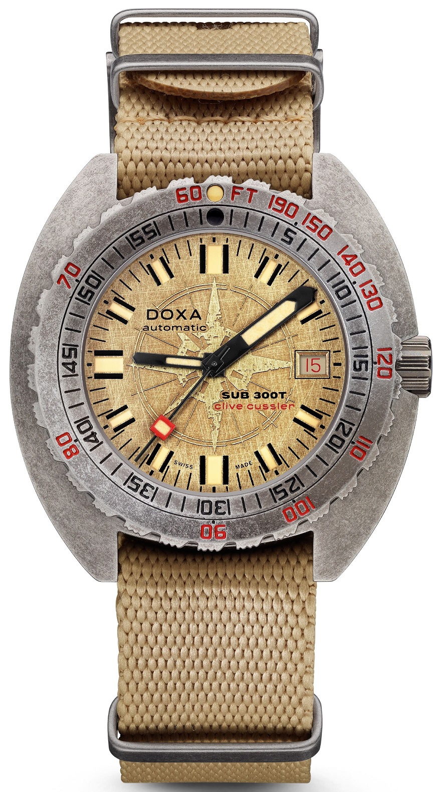 Die Marke DOXA bringt ihren abenteuerlichen Geist in die fiktive Welt von Clive Cussler. Der renommierte amerikanische Schriftsteller von Abenteuerromanen hat mehr als 85 Bücher geschrieben, von denen über 100 Millionen Exemplare verkauft wurden, und hat Dutzende von Schiffswracks durch die von ihm gegründete gemeinnützige Agentur NUMA entdeckt. Seine Bücher wurden zweimal für die Leinwand adaptiert: Raise the Titanic (1980) und Sahara (2005). Cusslers Romane hatten großen Einfluss darauf, dass DOXA weltweit bekannt wurde. Das berühmte orangefarbene Zifferblatt war ein monumentales Hilfsmittel des bekannten fiktiven Abenteuerhelden Dirk Pitt, der dank ihm die Zeit genau ablesen konnte, während er auf seinen Missionen tauchte. Wie Cusslers Romane historische Rätsel erforschten und die Charaktere auf epische Reisen mitnahmen, inspirierte der berühmte Autor, Reisende und auch Träger von DOXA-Uhren das Unternehmen zu einem neuen Ansatz für die SUB 300T-Uhren, die nun dieser Reihe ein künstlerisches und historisches Aussehen verleihen.
