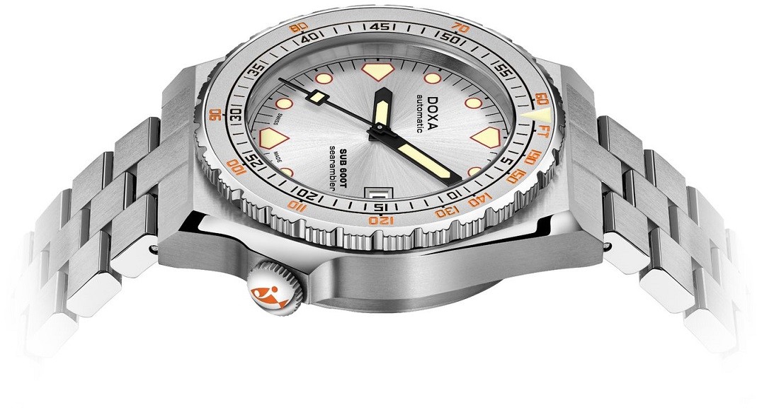 Im Jahr 2021 brachte die Marke Doxa ihr weiteres historisches Modell, den Typ SUB 600T, zurück ins Spiel, das die Firma im Jahr 1980 kurz vor der damaligen Einstellung der Tätigkeit vorstellte. Der wesentliche Unterschied zum Rest des damaligen Portfolios der Marke war ein brandneues Design, das einen anderen Weg einschlug als die Modelle, die auf dem ursprünglichen Typ SUB 300T basierten. Das Modell SUB 600T erhielt moderne, scharf geschnittene Formen und seine moderne Ausführung wird in einem Gehäuse mit einer Größe von 40 Millimetern verwendet. Anders als der Rest der Produktion von Doxa sind auch eine Reihe weiterer Details. Die Krone ist diesmal auf der vierten Stunde platziert und das Stahlarmband hat wieder scharf geschnittene Merkmale und ist dreigliedrig. Eine Alternative dazu ist das NATO-Armband, das garantiert, dass die Uhr am Handgelenk bleibt, auch wenn eine der Stifte versagt. Trotz dieser Unterschiede ist das Modell SUB 600T jedoch wieder klar als Vertreter seiner Marke erkennbar. Dies ist sowohl durch das Angebot an Farbvarianten als auch durch die charakteristische Form der Lünette und ihre doppelte Skala mit Minuten und sicherer Tiefe für das Tauchen ohne Dekompression in Fuß gegeben. Die Lünette kann in der Variante mit Stahl- oder Keramikeinlage gewählt werden. Das Modell SUB 600T verfügt über eine Wasserdichtigkeit bis zu einer Tiefe von 600 Metern.