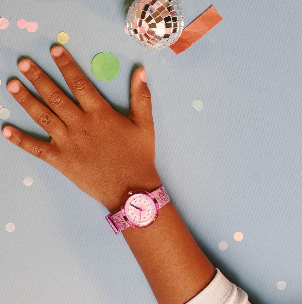 Fröhliche Uhren schweizerischer Qualität des größten Uhrenherstellers Swatch Group bringen Kindern spielerisch bei, die Zeit zu verfolgen und zu lesen. Hochwertige und sichere Materialien (ohne Phthalate und Bisphenol), Wasserdichtigkeit, erhöhte Stoßfestigkeit einschließlich eines clever platzierten Uhrwerks. Diese Eigenschaften zusammen mit einem ausgefeilten Stil und einer breiten Palette von Farbmotiven stellen die Parameter der besten ersten Uhren für Schulkinder und Vorschulkinder dar.