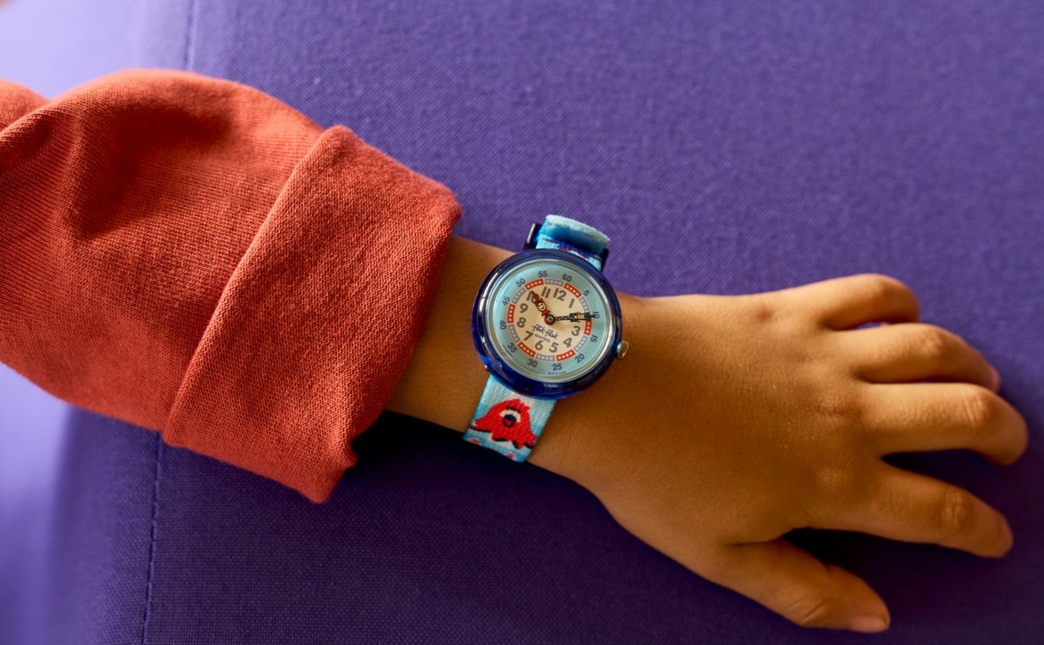 Fröhliche Uhren schweizerischer Qualität des größten Uhrenherstellers Swatch Group bringen Kindern spielerisch bei, die Zeit zu verfolgen und zu lesen. Hochwertige und sichere Materialien (ohne Phthalate und Bisphenol), Wasserdichtigkeit, erhöhte Stoßfestigkeit einschließlich eines clever platzierten Uhrwerks. Diese Eigenschaften zusammen mit einem ausgefeilten Stil und einer breiten Palette von Farbmotiven stellen die Parameter der besten ersten Uhren für Schulkinder und Vorschulkinder dar.