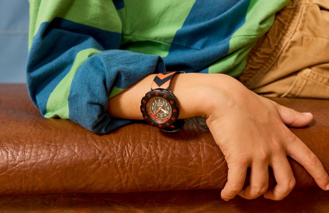 Fröhliche Uhren schweizerischer Qualität des größten Uhrenherstellers Swatch Group bringen Kindern spielerisch bei, die Zeit zu verfolgen und zu lesen. Hochwertige und sichere Materialien (ohne Phthalate und Bisphenol), Wasserdichtigkeit, erhöhte Stoßfestigkeit einschließlich eines clever platzierten Uhrwerks. Diese Eigenschaften zusammen mit einem ausgefeilten Stil und einer breiten Palette von Farbmotiven stellen die Parameter der besten ersten Uhren für Schulkinder und Vorschulkinder dar.