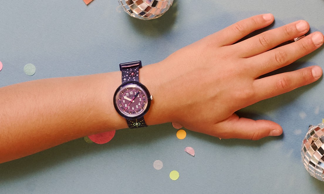 Fröhliche Uhren schweizerischer Qualität des größten Uhrenherstellers Swatch Group bringen Kindern spielerisch bei, die Zeit zu verfolgen und zu lesen. Hochwertige und sichere Materialien (ohne Phthalate und Bisphenol), Wasserdichtigkeit, erhöhte Stoßfestigkeit einschließlich eines clever platzierten Uhrwerks. Diese Eigenschaften zusammen mit einem ausgefeilten Stil und einer breiten Palette von Farbmotiven stellen die Parameter der besten ersten Uhren für Schulkinder und Vorschulkinder dar.