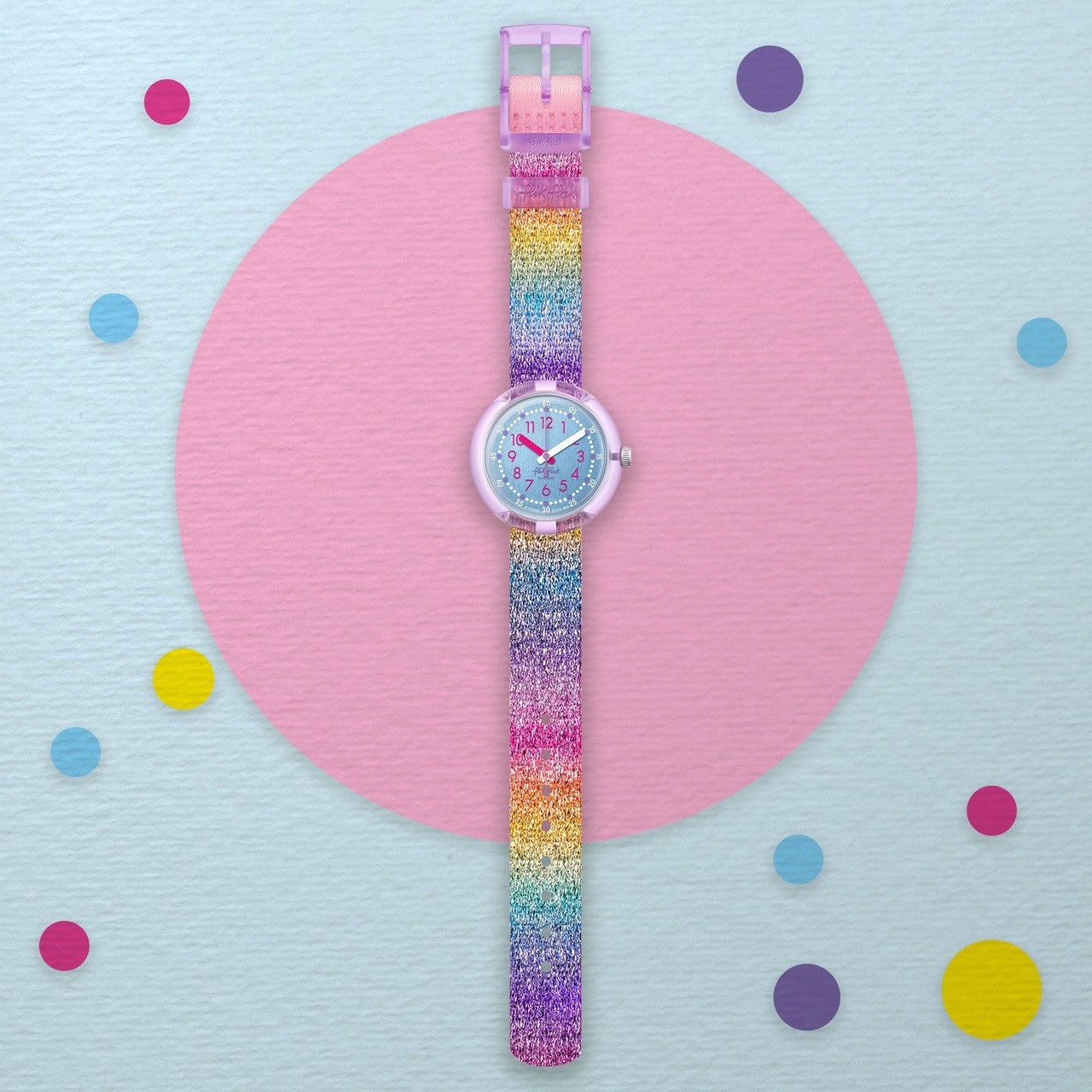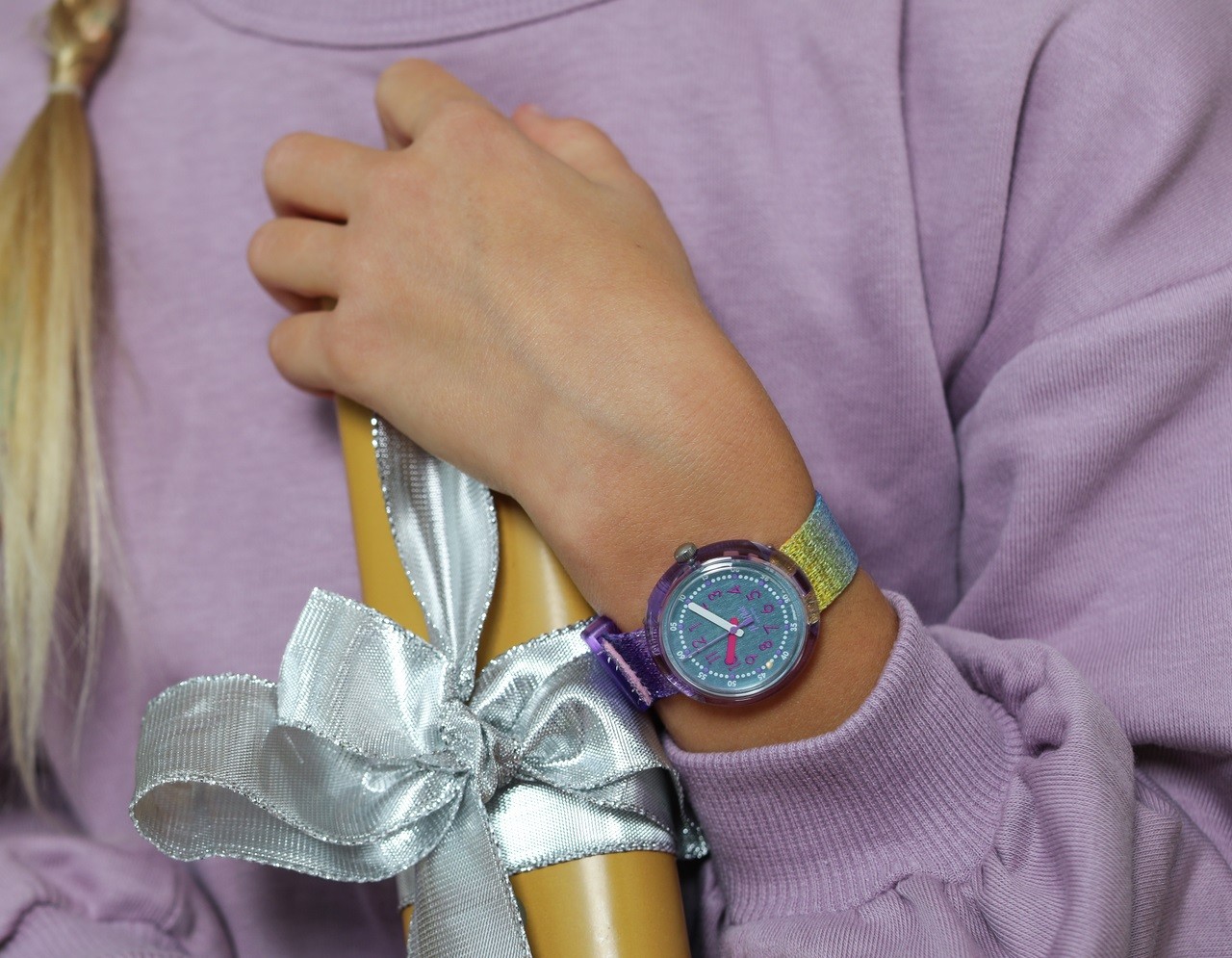 Fröhliche Uhren schweizerischer Qualität des größten Uhrenherstellers Swatch Group bringen Kindern spielerisch bei, die Zeit zu verfolgen und zu lesen. Hochwertige und sichere Materialien (ohne Phthalate und Bisphenol), Wasserdichtigkeit, erhöhte Stoßfestigkeit einschließlich eines clever platzierten Uhrwerks. Diese Eigenschaften zusammen mit einem ausgefeilten Stil und einer breiten Palette von Farbmotiven stellen die Parameter der besten ersten Uhren für Schulkinder und Vorschulkinder dar.