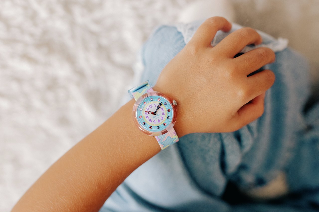 Fröhliche Uhren schweizerischer Qualität des größten Uhrenherstellers Swatch Group bringen Kindern spielerisch bei, die Zeit zu verfolgen und zu lesen. Hochwertige und sichere Materialien (ohne Phthalate und Bisphenol), Wasserdichtigkeit, erhöhte Stoßfestigkeit einschließlich eines clever platzierten Uhrwerks. Diese Eigenschaften zusammen mit einem ausgefeilten Stil und einer breiten Palette von Farbmotiven stellen die Parameter der besten ersten Uhren für Schulkinder und Vorschulkinder dar.
