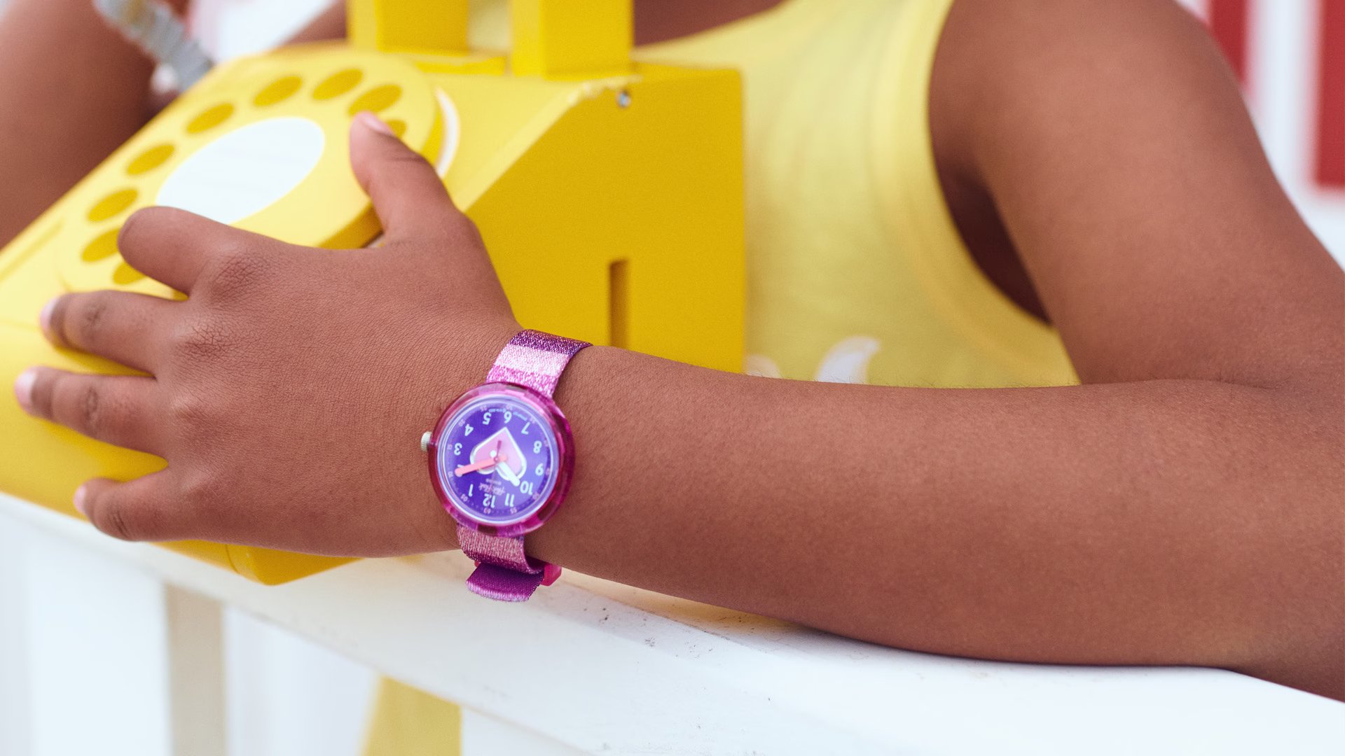 Fröhliche Uhren schweizerischer Qualität des größten Uhrenherstellers Swatch Group bringen Kindern spielerisch bei, die Zeit zu verfolgen und zu lesen. Hochwertige und sichere Materialien (ohne Phthalate und Bisphenol), Wasserdichtigkeit, erhöhte Stoßfestigkeit einschließlich eines clever platzierten Uhrwerks. Diese Eigenschaften zusammen mit einem ausgefeilten Stil und einer breiten Palette von Farbmotiven stellen die Parameter der besten ersten Uhren für Schulkinder und Vorschulkinder dar.