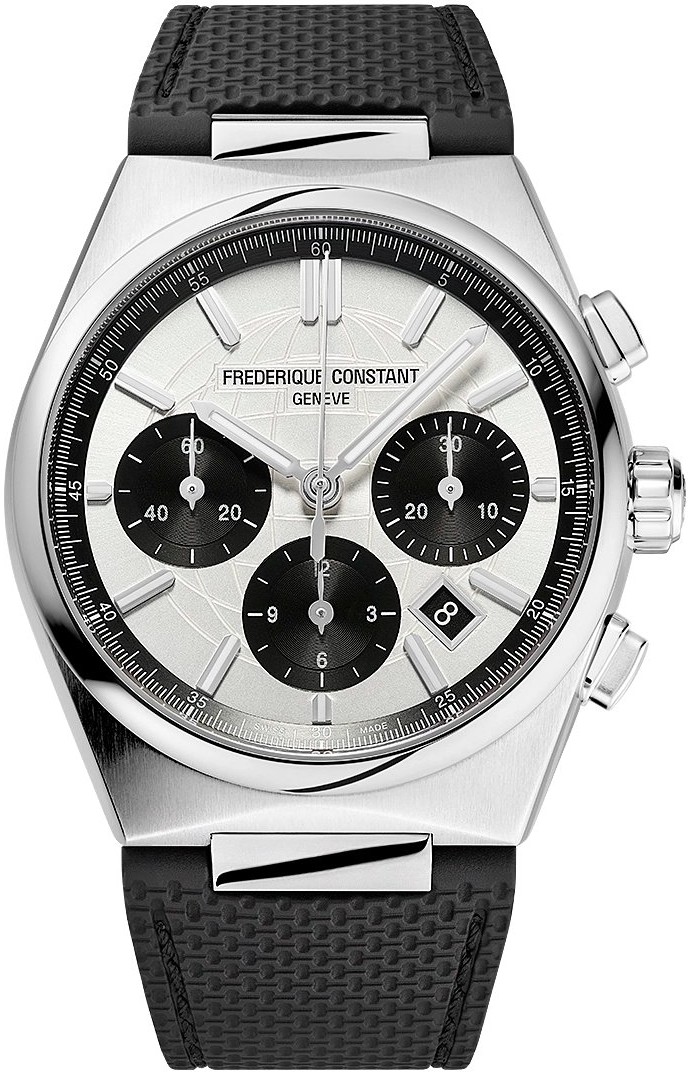 Frederique Constant Highlife Chronograph Automatic Limited Edition FC-391SB4NH6B sind automatische Herrenuhren mit einem integrierten Stahlarmband in einer Kombination aus gebürstetem und glänzendem Finish mit einer Schmetterlingsschließe. Es handelt sich um eine limitierte Auflage von 1888 Stück weltweit. Das Edelstahlgehäuse hat einen Durchmesser von 41 Millimetern, ein transparentes Gehäuse und eine signierte Krone. Diese vielseitigen Uhren im klassischen Design eignen sich für den täglichen Gebrauch. Das weiß-schwarze Zifferblatt mit Globusmotiv, Chronograph und Datumsanzeige wird durch ein widerstandsfähiges Saphirglas mit Antireflexbeschichtung geschützt. Die applizierten Stundenindizes sind zusammen mit den Zeigern mit einem lumineszierenden Anstrich Super-LumiNova® versehen, der perfekte Lesbarkeit bei schlechten Lichtverhältnissen garantiert. Der Antrieb der Uhr erfolgt durch das mechanische Uhrwerk FC-391 mit automatischem Aufzug und einer Gangreserve von etwa 60 Stunden. Die Basis des Kalibers ist La Joux-Perret L110. Dieses Uhrwerk mit Hacking-Funktion kann bei Bedarf auch manuell über die Krone aufgezogen werden. Mit einer Wasserdichtigkeit von 10 ATM sind sie zum Baden oder Schnorcheln geeignet. Im Lieferumfang ist ein zusätzliches Gummiband enthalten.