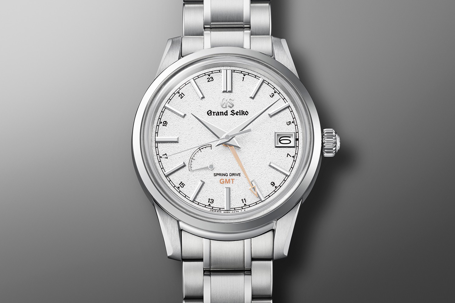 Grand Seiko Elegance Spring Drive GMT SBGE269G sind luxuriöse Herrenuhren mit einem Edelstahlarmband mit Faltschließe. Das Gehäuse aus Edelstahl hat einen Durchmesser von 40,2 Millimetern und einen transparenten Gehäuseboden. Das weiße Zifferblatt mit Datumsanzeige, Gangreserveanzeige und 24-Stunden-Anzeige wird durch ein widerstandsfähiges Saphirglas mit Antireflexbeschichtung geschützt. Die Farbe und Textur des Zifferblatts soll an Schnee erinnern, der die Landschaft bedeckt und im kristallklaren Licht glitzert. Der GMT-Zeiger ist in kontrastierendem Orange gehalten, inspiriert von den letzten Strahlen der untergehenden Sonne. Das Uhrwerk wird von einem Spring Drive 9R66 mit automatischem Aufzug und einer Gangreserve von 72 Stunden angetrieben. Dieses Werk mit Hacking-Funktion kann bei Bedarf auch manuell über die signierte Krone aufgezogen werden. Mit einer Wasserdichtigkeit von 10 ATM sind die Uhren zum Schwimmen und Schnorcheln geeignet.