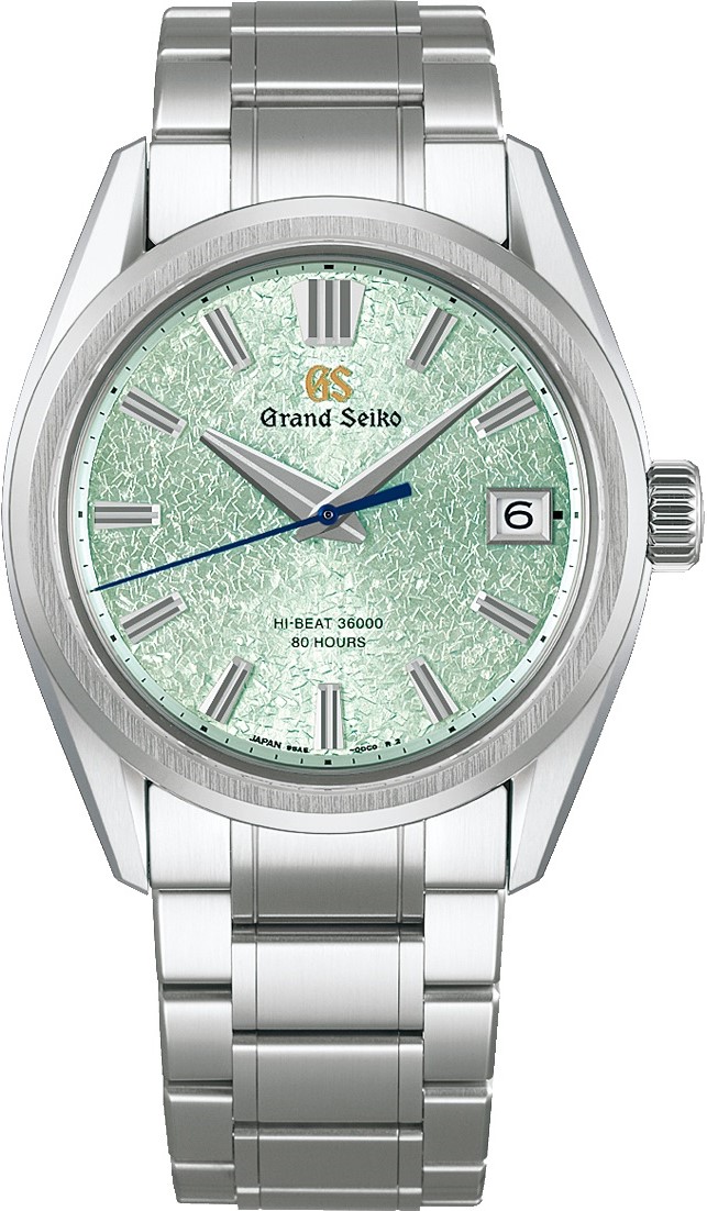 Grand Seiko Evolution 9 Hi-Beat 36000 Limited Edition SLGH021G sind luxuriöse Herrenuhren mit einem automatischen Uhrwerk und einem Stahlarmband mit Faltschließe. Das Gehäuse hat einen Durchmesser von 40 Millimetern, eine verschraubte Krone und einen transparenten Gehäuseboden. Gehäuse und Armband sind aus dem Material "Ever-Brilliant Steel" gefertigt, einem hochwertigen Stahl mit glänzendem Aussehen und sehr hoher Korrosionsbeständigkeit. Das hellgrüne, texturierte Zifferblatt mit Datumsanzeige und kontrastierendem blauen Sekundenzeiger ist durch ein widerstandsfähiges saphirglas mit entspiegelter Beschichtung geschützt. Die Farbe und Textur des Zifferblatts sind vom Genbi-Tal in Japan inspiriert, das sich inmitten des Flusses Iwai in der Präfektur Iwate befindet, wo die mechanischen Uhren von Grand Seiko hergestellt werden. Der Antrieb der Uhr wird durch das mechanische Uhrwerk 9SA5 mit automatischem Aufzug und einer Gangreserve von 80 Stunden gewährleistet. Dieses Uhrwerk mit Hacking-Funktion kann bei Bedarf auch manuell über die signierte Krone aufgezogen werden. Mit einer Wasserdichtigkeit von 10 ATM ist die Uhr für Schwimmen und Schnorcheln geeignet. Es handelt sich um eine limitierte Auflage von 1000 Stück weltweit.