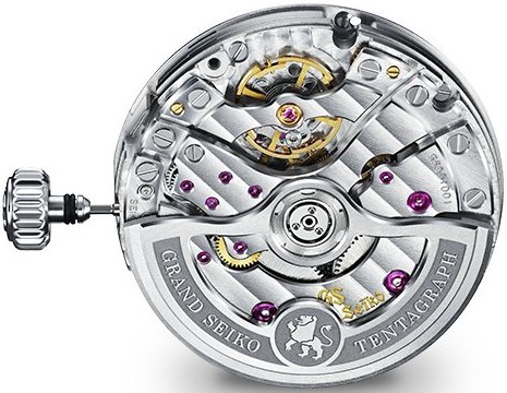 Das mechanische Uhrwerk 9SC5 Hi-Beat 36000 mit automatischem Aufzug, Datumsanzeige und Chronograph bietet eine Hackfunktion (Anhalten des Sekundenzeigers beim Herausziehen der Krone) und einen Handaufzug. Dieses Werk, verziert mit Perlage und gebürsteten Streifen, arbeitet mit einer hohen Frequenz von 36000 Halbschwingungen pro Stunde (zehn Schläge pro Sekunde) und hat 60 Steine. Das Uhrwerk mit einer Genauigkeit von +5 bis -3 Sekunden pro Tag bei normalem Gebrauch hat eine Gangreserve von 72 Stunden, selbst wenn die Chronographenfunktion aktiviert ist. Es handelt sich um den ersten mechanischen Chronographen der Marke Grand Seiko, genannt Tentagraph. Der Name Tentagraph leitet sich von den Eigenschaften des Kalibers 9SC5 ab: TEN Schläge pro Sekunde, DREI Tage Gangreserve, Automatisch und ChronoGRAPH.