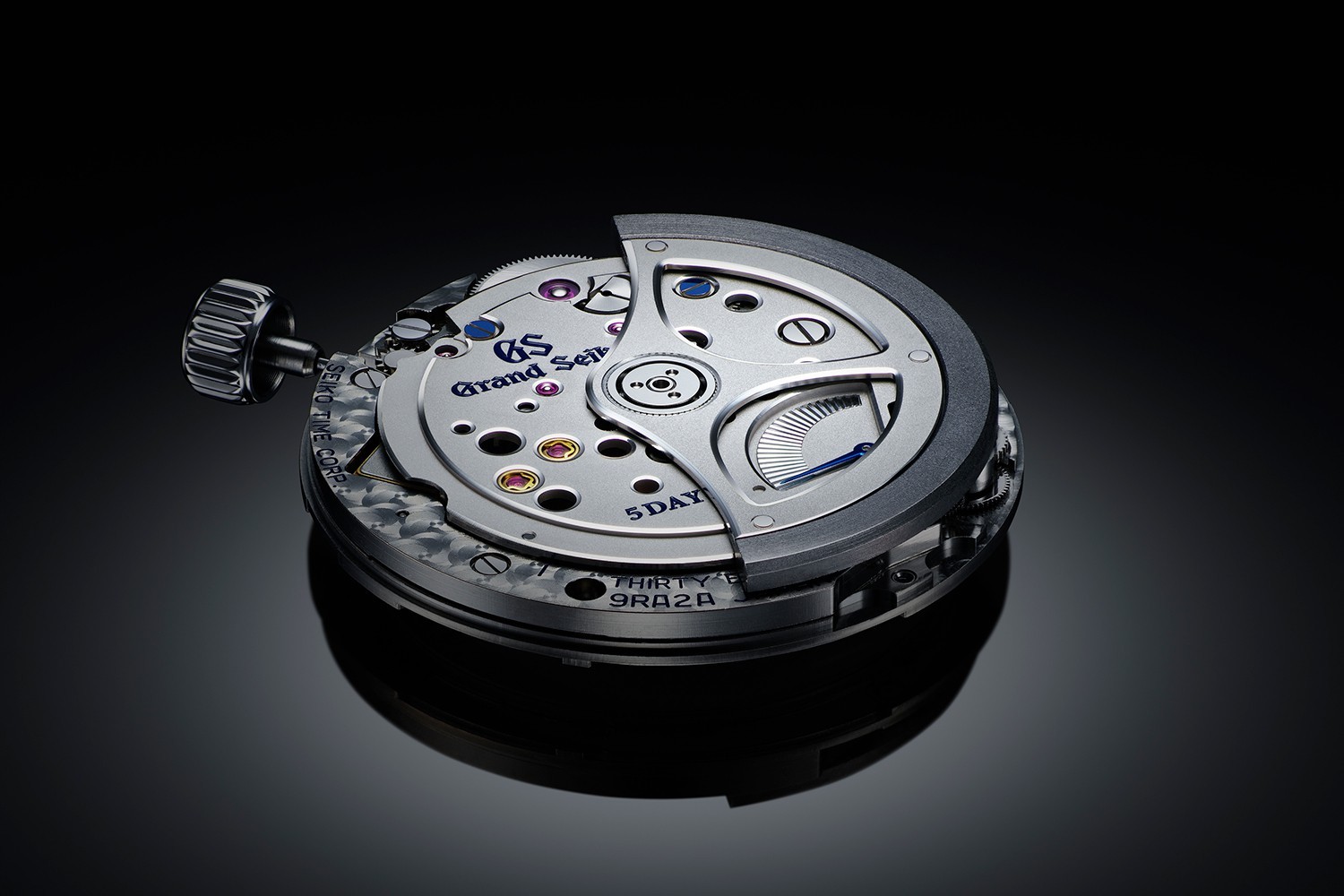 Spring Drive ist eine einzigartige Uhrentechnologie. Uhren mit dieser Technologie erzeugen Energie wie jede andere mechanische Uhr, jedoch in Kombination mit einem elektronischen Regler, um ein Maß an Genauigkeit zu bieten, das keine mechanische Uhr erreichen kann. Spring Drive reguliert das mechanische Uhrwerk mit modernster elektronischer Technologie, die ohne Batterien oder andere externe Energiequellen funktioniert. Seine einzige Energiequelle ist der Rotor, der zwei Hauptfedern aufzieht, die eine Reihe von Zahnrädern antreiben. Ein weiterer Rotor, der am Ende dieser Zahnräder angebracht ist, erzeugt eine kleine elektrische Ladung, die den elektronischen Schaltkreis und den Quarzoszillator aktiviert. Die Uhrwerke 9RA2 und 9RA5 mit automatischem Aufzug, einer Gangreserve von bis zu 120 Stunden und 38 Steinen bieten eine Gangreserveanzeige, Datumsanzeige und eine Sekundenstoppfunktion (Anhalten des Sekundenzeigers beim Herausziehen der Krone) mit der Möglichkeit des manuellen Aufzugs. Der Unterschied zwischen diesen beiden Kalibern liegt nur in der Position der Gangreserveanzeige, während Uhren mit dem Kaliber 9RA5 die Gangreserveanzeige auf dem Zifferblatt haben, kann bei Uhren mit dem Kaliber 9RA2 die Gangreserve durch den transparenten Gehäuseboden beobachtet werden. Beide haben eine Genauigkeit von ±10 Sekunden pro Monat und verwenden den Offset Magic Lever, um die Dicke des Uhrwerks um 0,8 Millimeter zu reduzieren. Durch das weitere Zurücksetzen der Krone wird der Schwerpunkt der Uhr gesenkt, was zu einem perfekten Sitz am Handgelenk führt. Die beiden Hauptfedern haben unterschiedliche Größen und sind so angeordnet, dass sie eine größere Gangreserve (120 Stunden) ermöglichen. Eine einteilige Mittelbrücke garantiert die Stabilität, Haltbarkeit und Stoßfestigkeit des Uhrwerks.