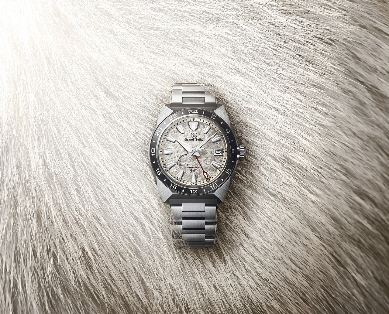 Grand Seiko Sport Spring Drive GMT SBGE307G sind luxuriöse Herrenuhren mit einem Titanarmband und einer Faltschließe. Das Titangehäuse hat einen Durchmesser von 44,5 Millimetern, eine verschraubte Krone, einen transparenten Gehäuseboden und eine drehbare schwarze GMT-Lünette mit einer 24-Stunden-Skala. Das silberne Zifferblatt mit Gangreserveanzeige und Datumsanzeige ist durch ein widerstandsfähiges saphirglas mit entspiegelter Beschichtung geschützt. Die Farbe und Textur des Zifferblatts sind von der Mähne eines Löwen inspiriert, den die Marke Grand Seiko als Symbol der Stärke verwendet. Der GMT-Zeiger ist in kontrastierendem Rot gehalten. Zeiger, Indizes und Lünette sind mit einem lumineszierenden LumiBrite-Belag versehen, der nach Beleuchtung perfekte Ablesbarkeit bei schlechten Lichtverhältnissen garantiert. Der Antrieb der Uhr wird durch das Uhrwerk Spring Drive 9R66 mit automatischem Aufzug und einer Gangreserve von 72 Stunden gewährleistet. Dieses Uhrwerk mit Hacking-Funktion kann bei Bedarf auch manuell über die signierte Krone aufgezogen werden. Mit einer Wasserdichtigkeit von 20 ATM ist die Uhr für das Tiefseetauchen geeignet.