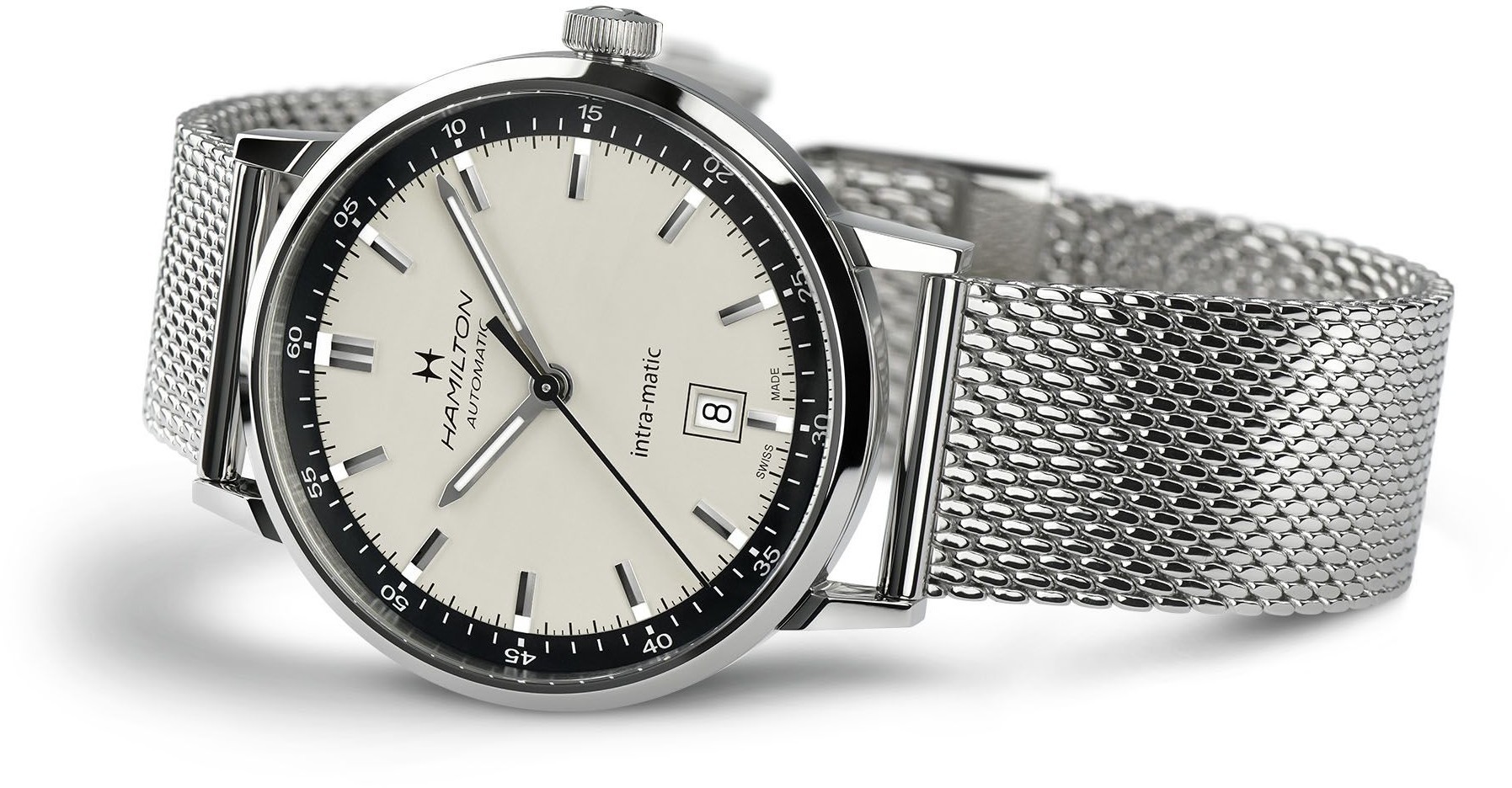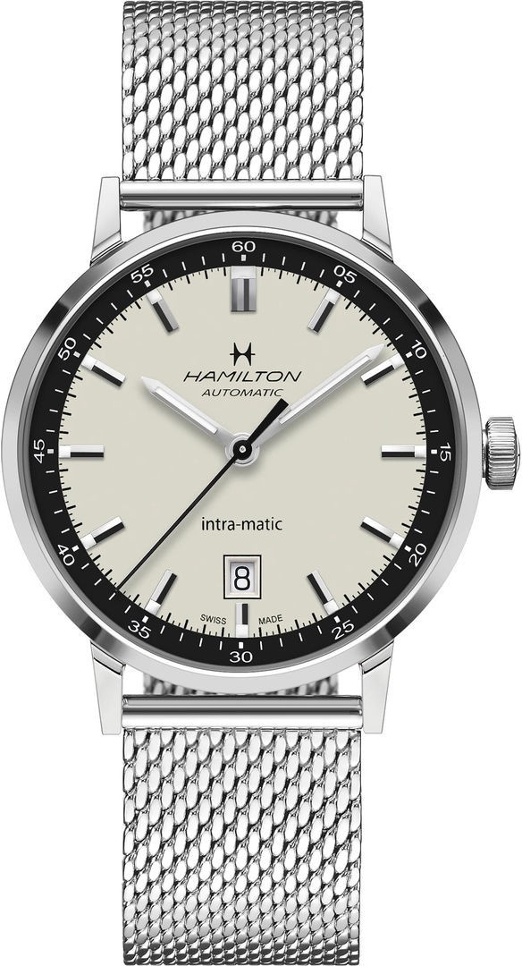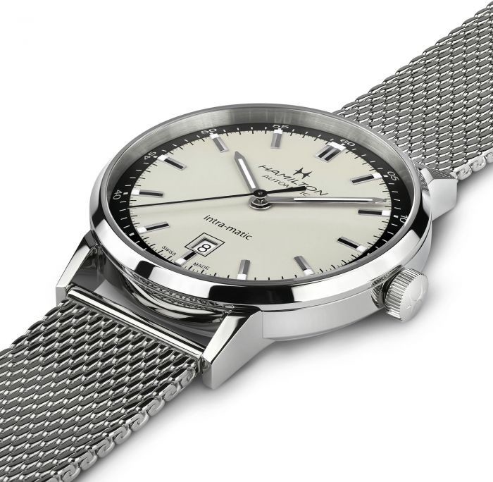 Hamilton American Classic Intra-Matic Auto H38425120 sind Herren-Automatikuhr mit einem Milanaise-Armband aus Stahl und einer Klappschließe. Das Edelstahlgehäuse hat einen Durchmesser von 40 Millimetern. Das schwarz-weiße Zifferblatt mit Datumsanzeige auf sechs Uhr wird durch ein widerstandsfähiges saphirglas mit Antireflexbeschichtung geschützt. Die Zeiger und Indizes verfügen über eine lumineszierende Beschichtung Super-LumiNova®, die eine perfekte Lesbarkeit bei schlechten Lichtverhältnissen garantiert. Das Uhrwerk wird durch ein mechanisches Kaliber H-10 mit automatischem Aufzug und einer Gangreserve von 80 Stunden angetrieben. Mit einer Wasserdichtigkeit von 5 ATM ist die Uhr gegen Regen und beim Duschen geschützt.