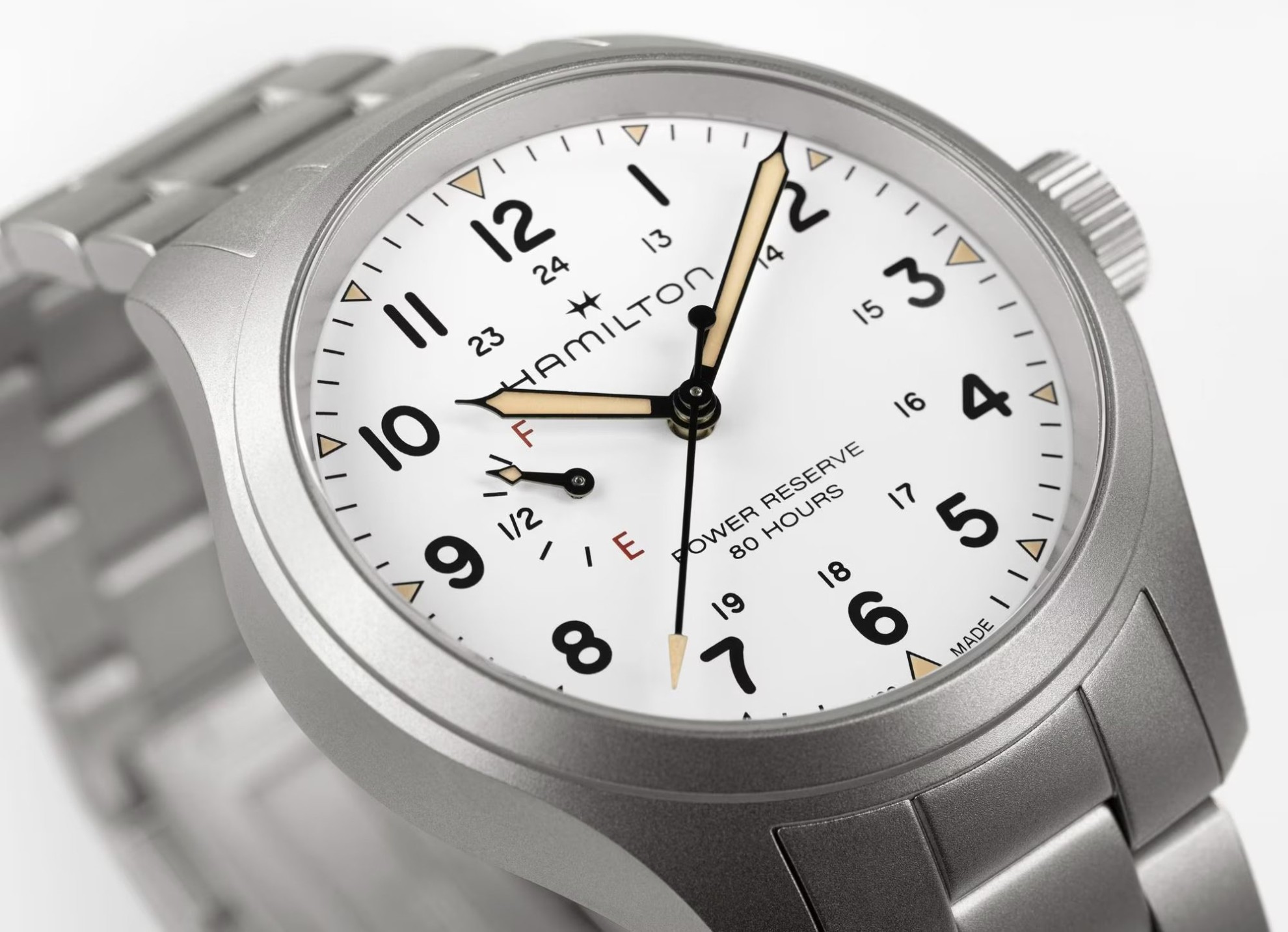 und zuverlässig sein. Daher entstand der oft verwendete Name für diesen Uhrentyp, die sogenannte „field watch“ oder Uhren für das Schlachtfeld. Dieses Schlachtfeld ist heute für die meisten Benutzer der Großstadtdschungel, aber gerade deshalb ist das einfache und zeitlose Design der Uhren aus der Khaki-Kollektion so beliebt - große arabische Ziffern in Kombination mit starker Leuchtkraft und einem zuverlässigen Uhrwerk sind das richtige Erfolgsrezept. Die breite Palette einzelner Modelle versucht, fast jeden Geschmack zu treffen - im Angebot sind Modelle mit Edelstahlgehäuse mit oder ohne PVD-Beschichtung oder sogar