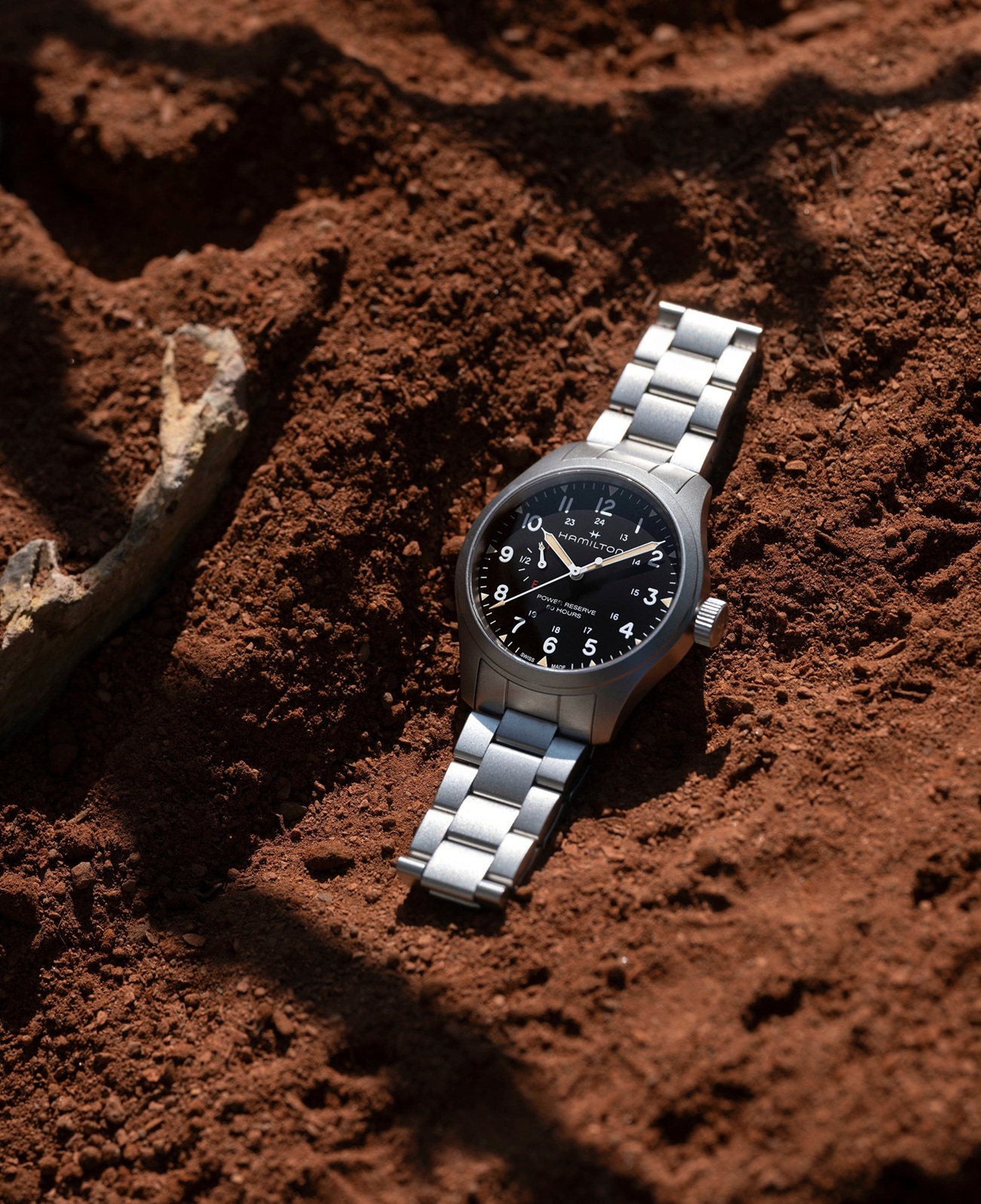 und zuverlässig sein. Daher entstand der oft verwendete Name für diesen Uhrentyp, die sogenannte „field watch“ oder Uhren für das Schlachtfeld. Dieses Schlachtfeld ist heute für die meisten Benutzer der Großstadtdschungel, aber gerade deshalb ist das einfache und zeitlose Design der Uhren aus der Khaki-Kollektion so beliebt - große arabische Ziffern in Kombination mit starker Leuchtkraft und einem zuverlässigen Uhrwerk sind das richtige Erfolgsrezept. Die breite Palette einzelner Modelle versucht, fast jeden Geschmack zu treffen - im Angebot sind Modelle mit Edelstahlgehäuse mit oder ohne PVD-Beschichtung oder sogar