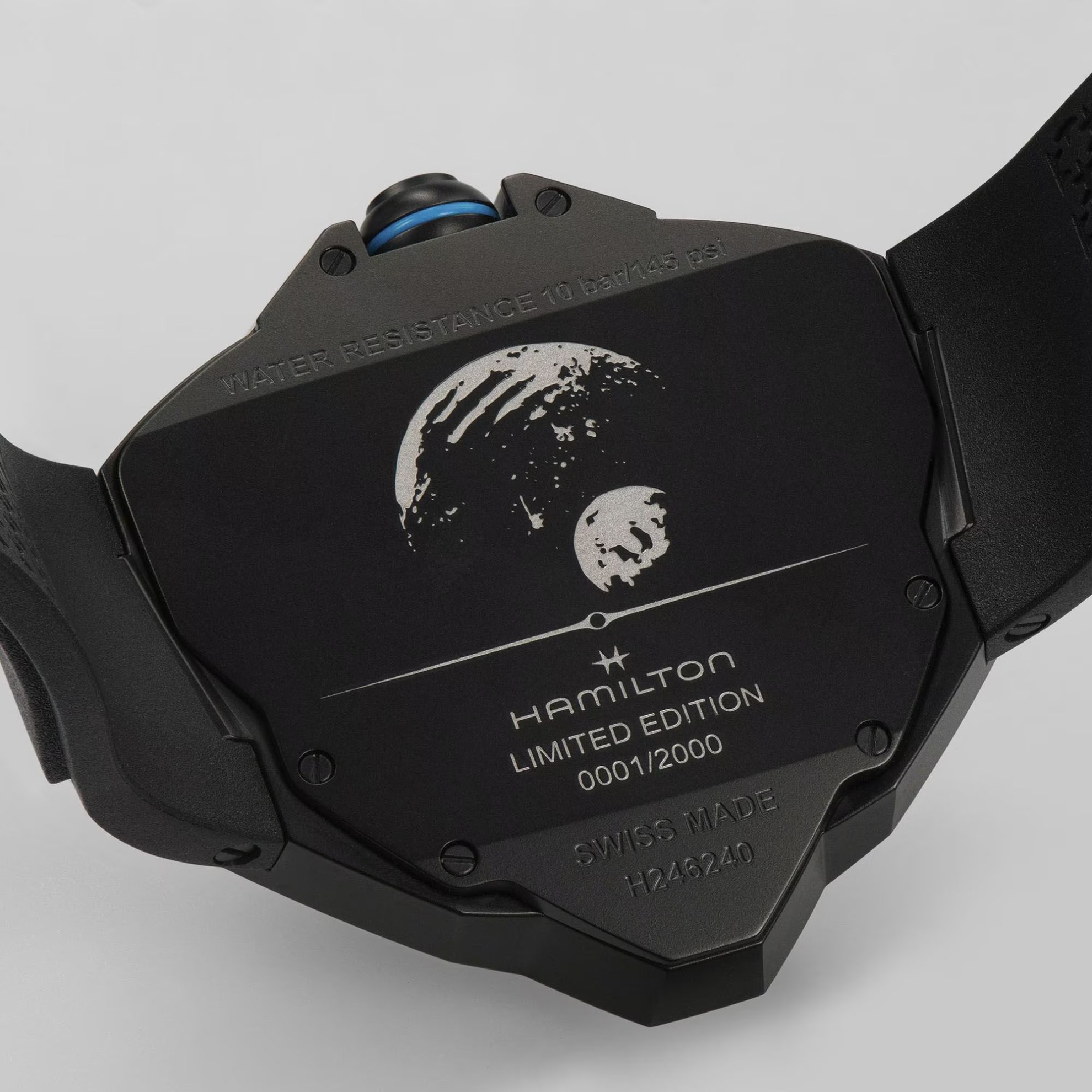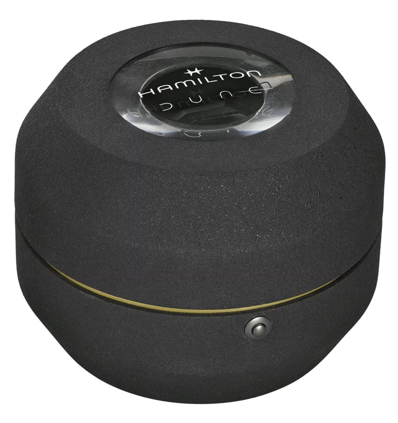Hamilton Ventura Edge Dune Limited Edition H24624330 sind Herrensportuhren mit einem schwarzen Kautschukarmband mit Dornschließe. Das ikonische dreieckige Gehäuse aus Edelstahl mit schwarzer PVD-Beschichtung hat eine Größe von 51 x 47 Millimetern. Das schwarze digitale Zifferblatt wird durch ein widerstandsfähiges Saphirglas mit Antireflexbeschichtung geschützt. Die blauen Elemente auf dem Zifferblatt sind mit einer Super-LumiNova®-Leuchtbeschichtung versehen, die eine perfekte Ablesbarkeit bei schlechten Lichtverhältnissen garantiert. Das Uhrwerk wird durch ein Quarzwerk angetrieben. Mit einer Wasserdichtigkeit von 10 ATM ist die Uhr für Schwimmen und Schnorcheln geeignet. Es handelt sich um eine limitierte Auflage von 2000 Stück weltweit, inspiriert von einem Handgelenksgerät aus dem Film Dune. Sie wird in einer speziellen Box geliefert.