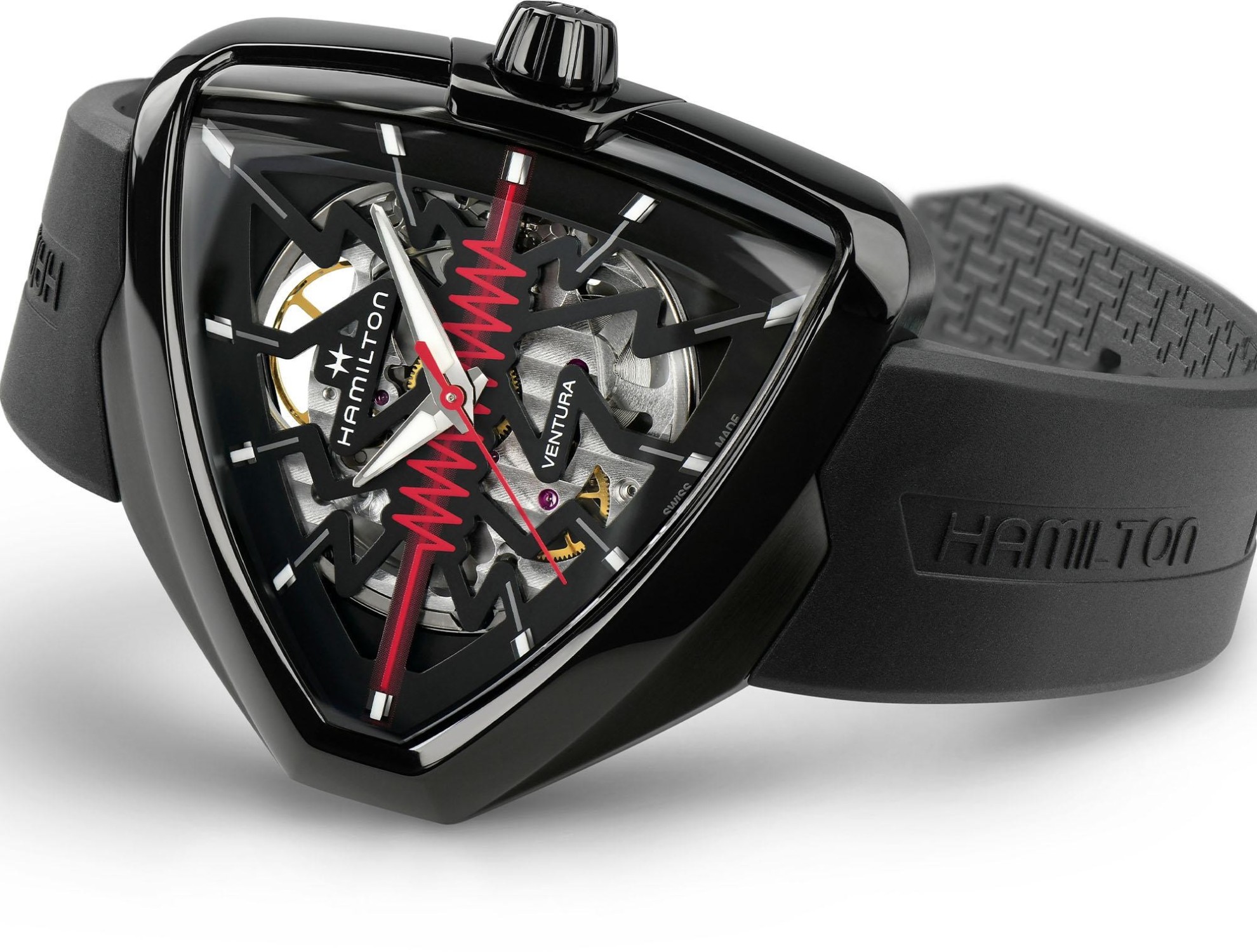 Die ikonische Gehäuseform in Form eines Dreiecks ist seit über 60 Jahren in der Hamilton-Kollektion und kann einfach nicht übersehen oder verwechselt werden. Die futuristische Form wurde 1957 durch eine andere Neuheit in Form des ersten elektrisch betriebenen Uhrwerks verstärkt und das Modell Ventura wurde zu Recht auch bei berühmten Persönlichkeiten wie Elvis Presley oder Will Smith im Film Men In Black beliebt. Derzeit sind Modelle mit Quarz- und mechanischem Uhrwerk sowohl in kleineren Damenausführungen als auch in größeren Herrengrößen erhältlich, wobei zwischen skelettierten Versionen und limitierten Auflagen gewählt werden kann. Das Gehäuse in Form eines Dreiecks ist zudem sehr bequem, da es genau das Handgelenk seines Trägers nachbildet und gleichzeitig genügend Platz für eine hervorragende Ablesbarkeit des Zifferblatts bietet. Über den Raum zur Ausdruck des Stils seines Trägers muss hier überhaupt nicht gesprochen werden, das ist völlig klar.