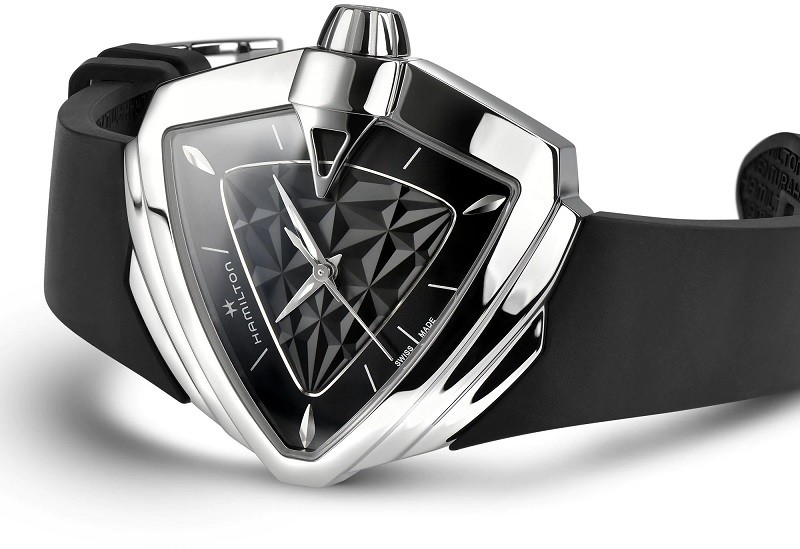 Die ikonische Gehäuseform in Form eines Dreiecks ist seit über 60 Jahren in der Hamilton-Kollektion und kann einfach nicht übersehen oder verwechselt werden. Die futuristische Form wurde 1957 durch eine andere Neuheit in Form des ersten elektrisch betriebenen Uhrwerks verstärkt und das Modell Ventura wurde zu Recht auch bei berühmten Persönlichkeiten wie Elvis Presley oder Will Smith im Film Men In Black beliebt. Derzeit sind Modelle mit Quarz- und mechanischem Uhrwerk sowohl in kleineren Damenausführungen als auch in größeren Herrengrößen erhältlich, wobei zwischen skelettierten Versionen und limitierten Auflagen gewählt werden kann. Das Gehäuse in Form eines Dreiecks ist zudem sehr bequem, da es genau das Handgelenk seines Trägers nachbildet und gleichzeitig genügend Platz für eine hervorragende Ablesbarkeit des Zifferblatts bietet. Über den Raum zur Ausdruck des Stils seines Trägers muss hier überhaupt nicht gesprochen werden, das ist völlig klar.