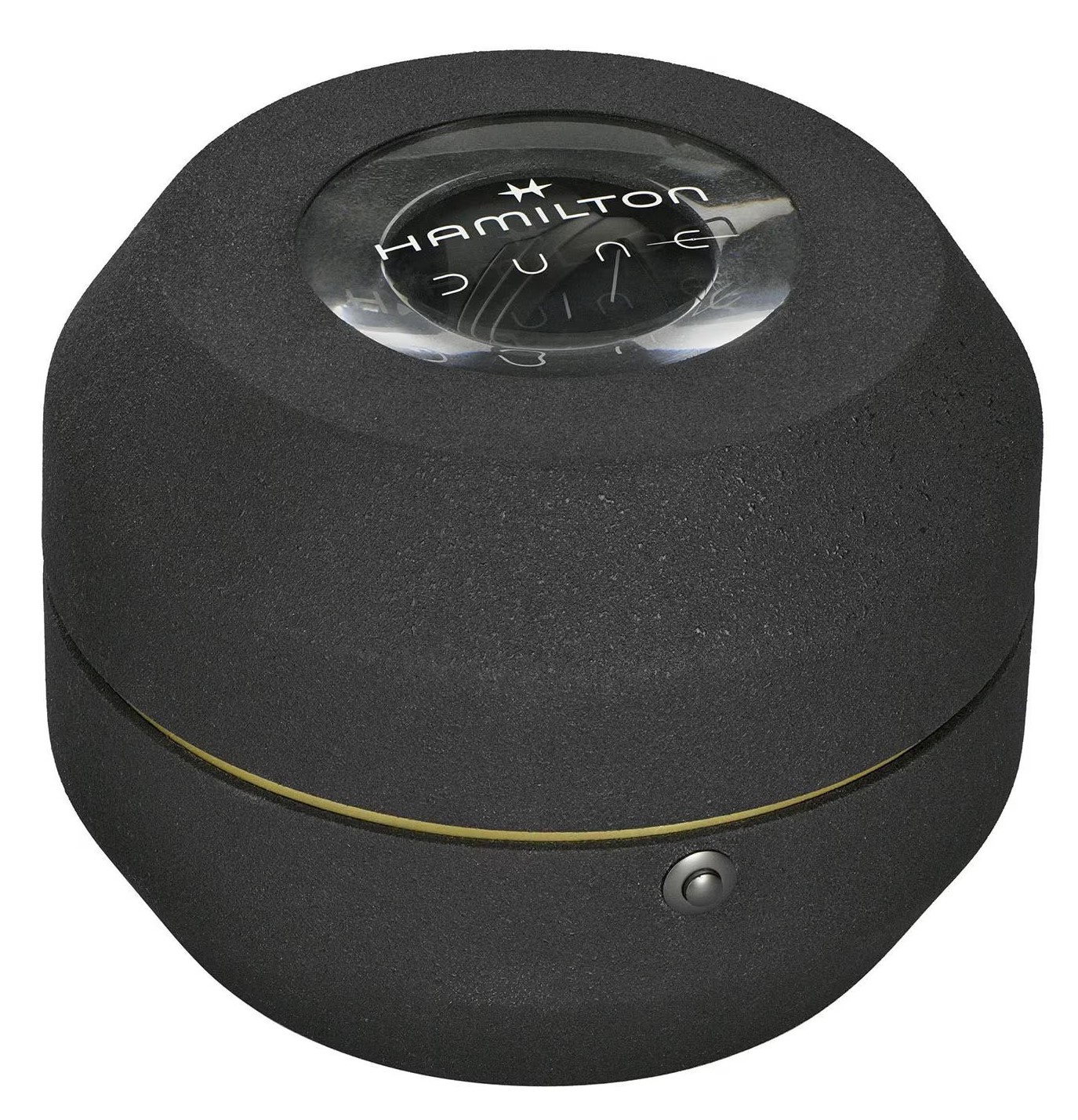 Hamilton Ventura XXL Bright Dune Limited Edition H24614330 sind Herrensportuhren mit einem schwarzen Kautschukarmband mit Dornschließe. Das ikonische dreieckige Gehäuse aus Edelstahl mit schwarzer PVD-Beschichtung hat eine Größe von 52 x 48 Millimetern. Das schwarze Zifferblatt wird durch ein widerstandsfähiges Saphirglas mit Antireflexbeschichtung geschützt. Die blauen Linien auf dem Zifferblatt sind mit einer Super-LumiNova®-Leuchtbeschichtung versehen, die eine perfekte Ablesbarkeit bei schlechten Lichtverhältnissen garantiert. Das Uhrwerk wird durch ein Quarzwerk F03.105 angetrieben. Mit einer Wasserdichtigkeit von 5 ATM ist die Uhr gegen Regen und beim Duschen geschützt. Es handelt sich um eine limitierte Auflage von 3000 Stück weltweit, inspiriert von einem Handgelenksgerät aus dem Film Dune.