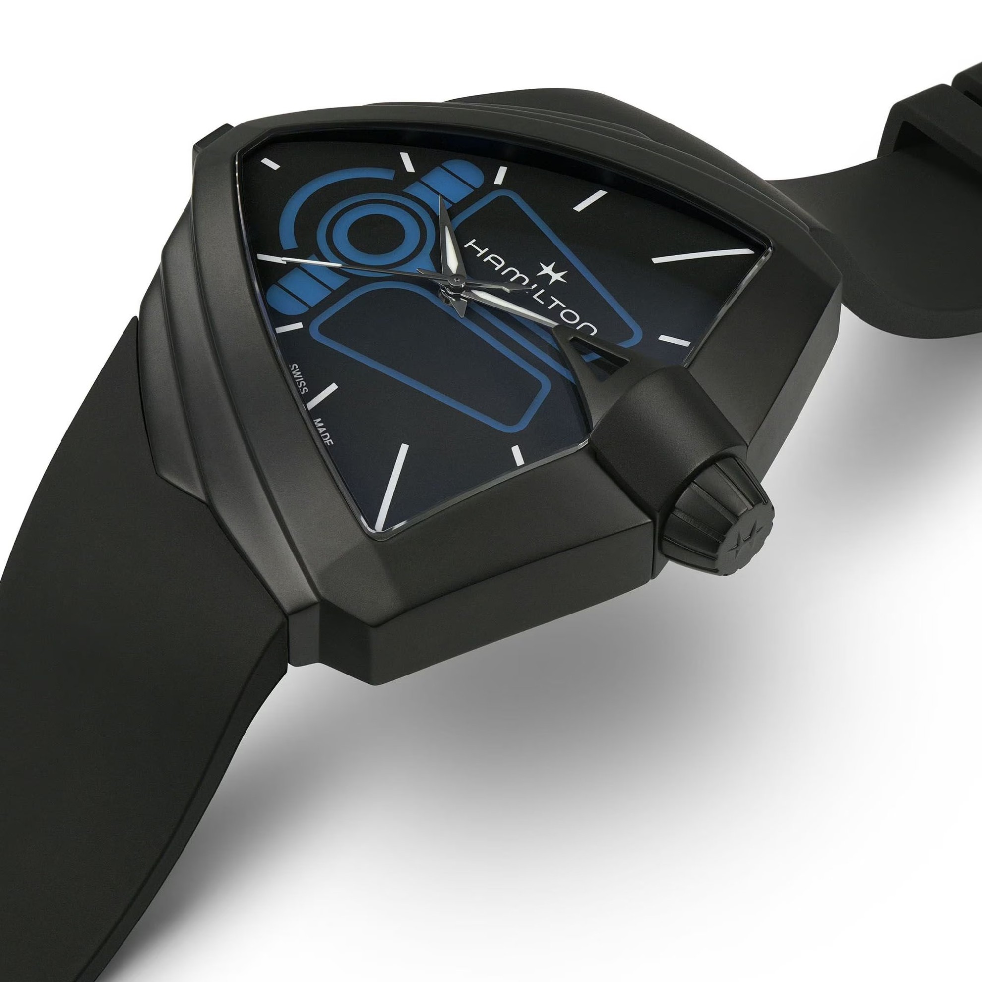 Die ikonische Gehäuseform in Form eines Dreiecks ist seit über 60 Jahren in der Hamilton-Kollektion und kann einfach nicht übersehen oder verwechselt werden. Die futuristische Form wurde 1957 durch eine andere Neuheit in Form des ersten elektrisch betriebenen Uhrwerks verstärkt und das Modell Ventura wurde zu Recht auch bei berühmten Persönlichkeiten wie Elvis Presley oder Will Smith im Film Men In Black beliebt. Derzeit sind Modelle mit Quarz- und mechanischem Uhrwerk sowohl in kleineren Damenausführungen als auch in größeren Herrengrößen erhältlich, wobei zwischen skelettierten Versionen und limitierten Auflagen gewählt werden kann. Das Gehäuse in Form eines Dreiecks ist zudem sehr bequem, da es genau das Handgelenk seines Trägers nachbildet und gleichzeitig genügend Platz für eine hervorragende Ablesbarkeit des Zifferblatts bietet. Über den Raum zur Ausdruck des Stils seines Trägers muss hier überhaupt nicht gesprochen werden, das ist völlig klar.