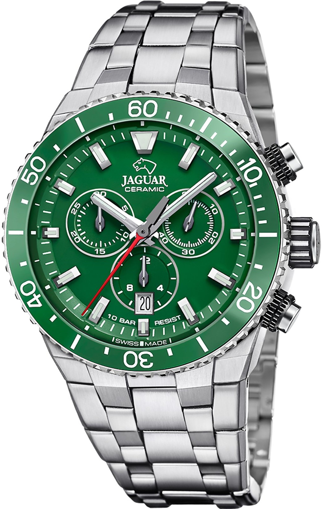 Jaguar Ceramic J1022/3 Antrieb: Batterie Durchmesser: 44,8 mm Armbandmaterial: Stahl Wasserdichtigkeit: 100 m / 10 ATM 550 € Menge: In den Warenkorb Auf Lager Zentrallager ja Lieferdatum: 3-5 Tage Verwandte Produkte 550 € 550 € 475 € 475 € 475 € 475 € 475 € 550 € 550 € 590 € Verlängerte Garantie 5 Jahre Lebenslanger kostenloser Batteriewechsel i Autorisierter Händler i Zur Vergleichsliste hinzufügen Produkt aus dem Vergleich entfernen Teilen SMS Zur Wunschliste hinzufügen Spezifikationen 550 € ProductSpecification Uhrentyp Herrenuhren Stil sportlich, klassisch Zifferblatt Mit Zeigern Zifferblattform Rund Zifferblattfarbe Grün Glas Saphirglas Antireflex-Beschichtung Ja Leuchtkraft Zeiger und Indizes Gehäuse Stahl Wasserdichtigkeit 100 m / 10 ATM Antrieb Batterie Uhrwerk-Kaliber Ronda 5030D Funktionen Stoppuhr, Datum Gewicht 208 g GRÖSSE Durchmesser 44,8 mm Dicke 12,65 mm Armband Armbandmaterial Stahl Armbandfarbe Silber Stegbreite 28,5 mm Schließe Klappschließe