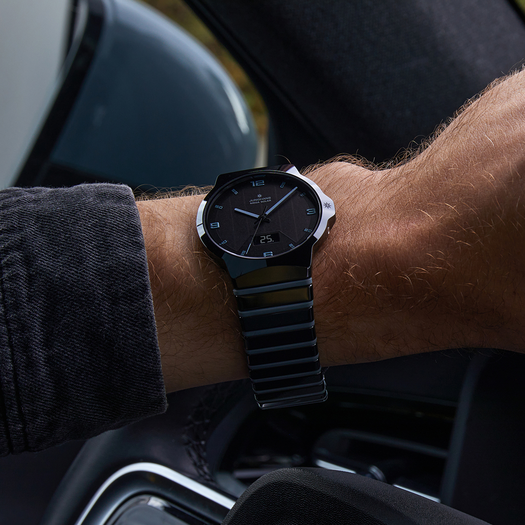 Funkuhrwerke sind bis heute ein wichtiger Bestandteil der Marke Junghans. Der Grund dafür ist, dass Junghans der Erfinder der Funkarmbanduhr ist und diese erstmals 1990 vorstellte. Die multifrequente drahtlose Solartechnologie in diesen Uhren kombiniert absolute Präzision mit praktischen Funktionen wie einem ewigen Kalender und automatischem Wechsel zwischen Sommer- und Winterzeit. Selbstverständlich sind ein In-House-Uhrwerk, hohe Materialqualität und Saphirglas.