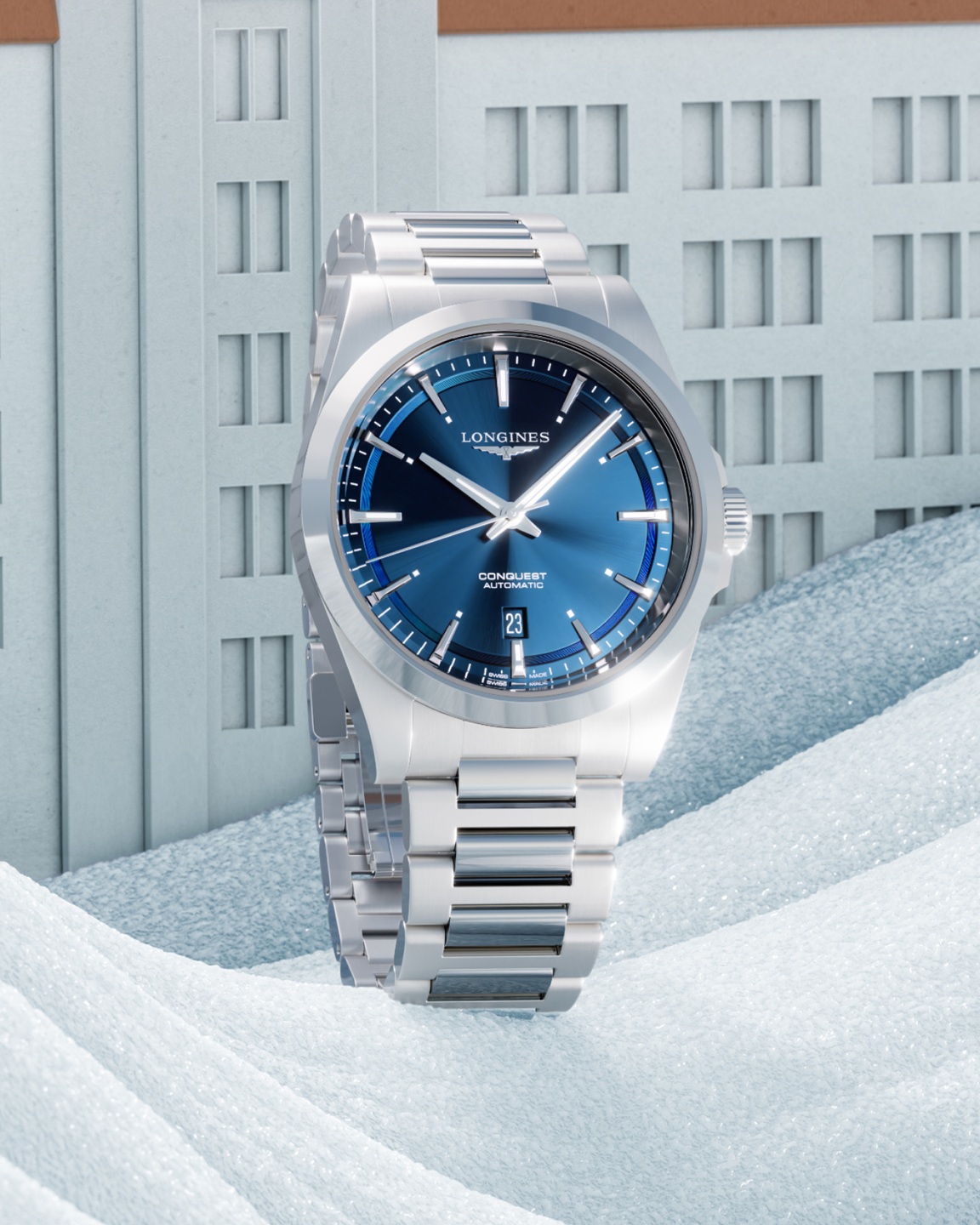 Longines Conquest L3.830.4.92.6 sind klassische Herrenuhren mit einem Stahlarmband und einer Faltschließe. Das Gehäuse aus Edelstahl hat einen Durchmesser von 41 Millimetern, einen transparenten Gehäuseboden und eine verschraubte Krone. Das dunkelblaue Zifferblatt mit Sonnenschliff und Datumsanzeige bei sechs Uhr wird durch ein Saphirglas mit beidseitiger Antireflexbeschichtung geschützt. Die Zeiger und Indizes sind mit einem Leuchtanstrich Super-LumiNova® versehen, der nach Beleuchtung perfekte Lesbarkeit bei schlechten Lichtverhältnissen garantiert. Der Uhrbetrieb wird durch ein mechanisches Uhrwerk L888 mit automatischem Aufzug und einer Gangreserve von etwa 72 Stunden gewährleistet. Dieses Uhrwerk mit der Funktion des Anhaltens des Sekundenzeigers beim Herausziehen der Krone in die äußerste Position, bekannt als Hacking, kann bei Bedarf auch manuell aufgezogen werden. Das Kaliber ist mit einer Silizium-Spiralfeder ausgestattet, die den Uhren eine hohe Resistenz gegen Magnetfelder verleiht. Mit einer Wasserdichtigkeit von 10 ATM sind die Uhren zum Schwimmen und Schnorcheln geeignet.