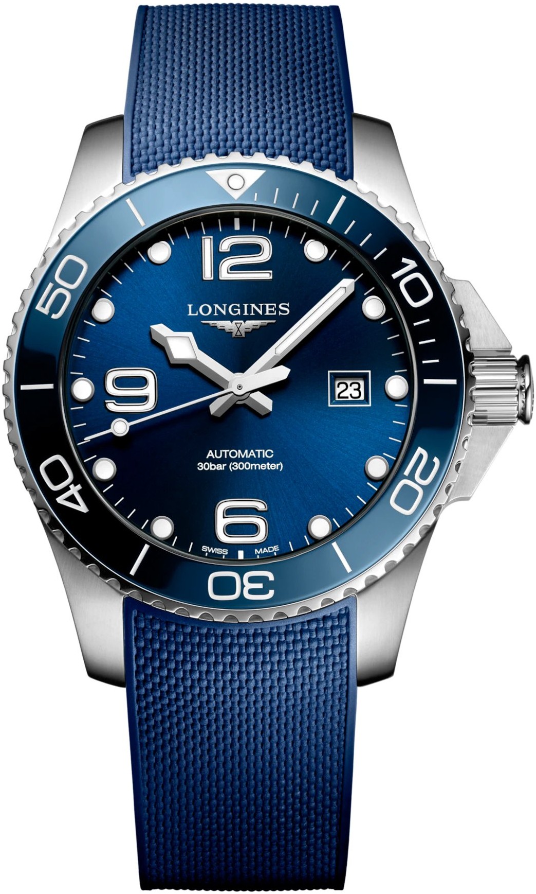 Die HydroConquest-Kollektion bietet sportlich orientierte Uhren, die nicht nur zum Schwimmen oder Tauchen geeignet sind. Sie ist eine klassische Hommage an Taucheruhren, bei denen alle über eine drehbare Lünette oder eine verschraubte Krone zur Gewährleistung der Wasserdichtigkeit bis 300 Meter verfügen und dennoch dank einer breiten Auswahl an Größen und Farbvarianten der Zifferblätter ausreichend modern sind.