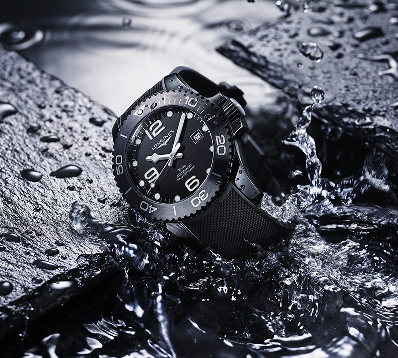 Longines HydroConquest L3.784.4.56.9 sind Herren-Taucheruhren mit einem schwarzen Kautschukarmband und einer Faltschließe. Das schwarze Keramikgehäuse hat einen Durchmesser von 43 Millimetern, eine verschraubte Krone und eine einseitig drehbare Lünette mit schwarzer Keramikeinlage. Das matte schwarze Zifferblatt mit Datumsanzeige auf der Drei-Uhr-Position wird durch ein Saphirglas mit beidseitiger Antireflexbeschichtung geschützt. Die applizierten Stundenindizes, Zeiger und der Punkt auf der Lünette sind mit einer Leuchtbeschichtung Super-LumiNova® versehen, die nach Aufladung eine perfekte Ablesbarkeit bei schlechten Lichtverhältnissen garantiert. Der Antrieb der Uhr erfolgt durch ein mechanisches Werk L888 mit automatischem Aufzug und einer Gangreserve von etwa 72 Stunden. Dieses Werk mit Sekundenstoppfunktion beim Herausziehen der Krone in die äußerste Position, für die sich die Bezeichnung Hacking eingebürgert hat, kann bei Bedarf auch manuell aufgezogen werden. Das Kaliber ist mit einer Siliziumspirale ausgestattet, die der Uhr eine hohe Resistenz gegen Magnetfelder verleiht. Die Uhr mit einer Wasserdichtigkeit von 30 ATM ist für das Tieftauchen geeignet.