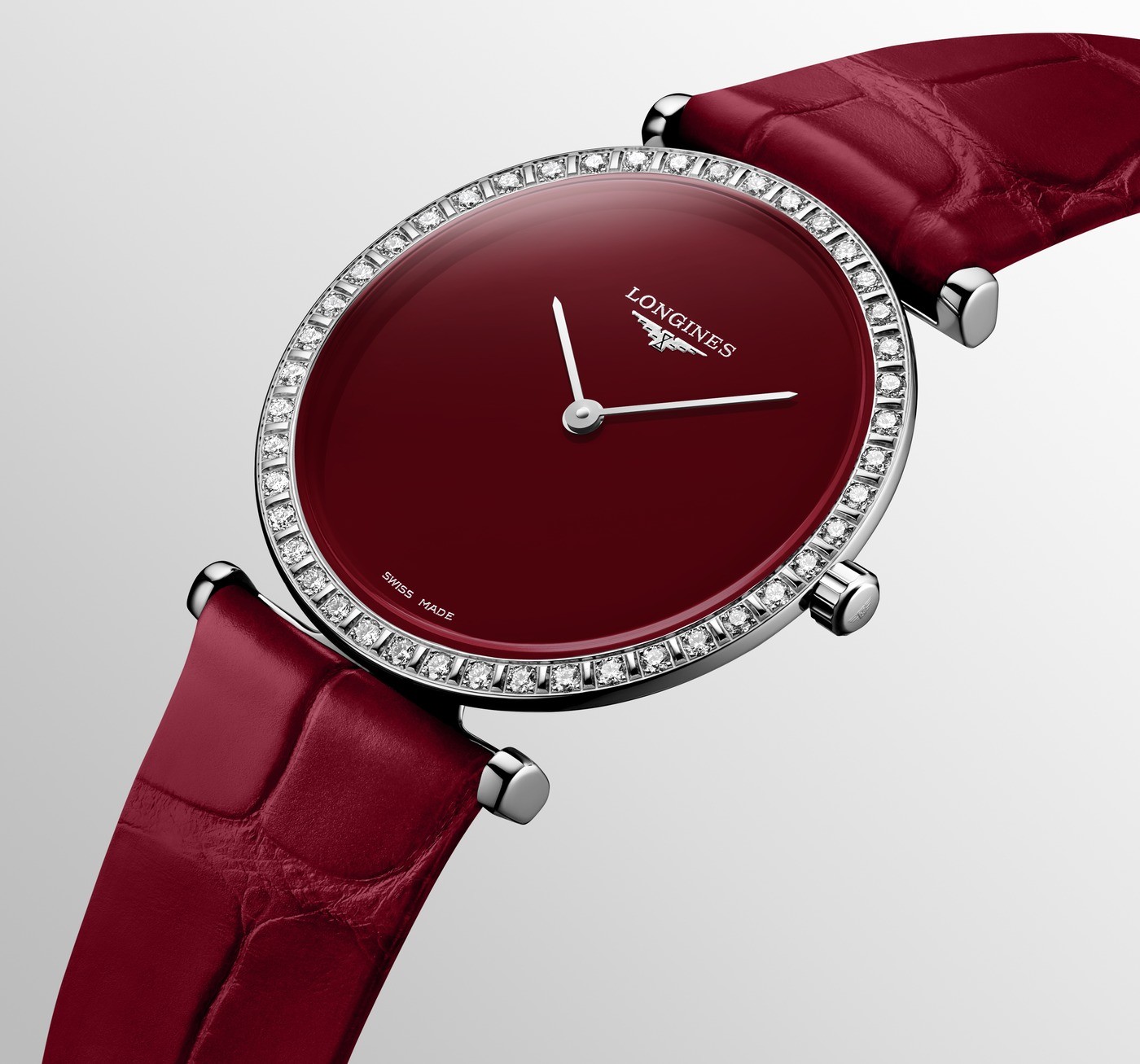 Die neuen monochromen Uhren La Grande Classique de Longines sind stilvoll, frisch und bereichern die klassische Eleganz dieser Reihe. Die unauffälligen Proportionen der Uhren mit einem Edelstahlgehäuse von 29 Millimetern Durchmesser bestechen durch farbige, polierte, lackierte Zifferblätter, die durch Saphirglas geschützt und von einer auffälligen Lünette mit 44 Diamanten Top Wesselton mit einem Gewicht von 0,369 ct und Reinheit IF-VVS umgeben sind. Das Uhrwerk wird durch ein Quarzwerk L420 angetrieben. Mit einer Wasserdichtigkeit von 3 ATM sind die Uhren gegen Feuchtigkeit und Regen geschützt.