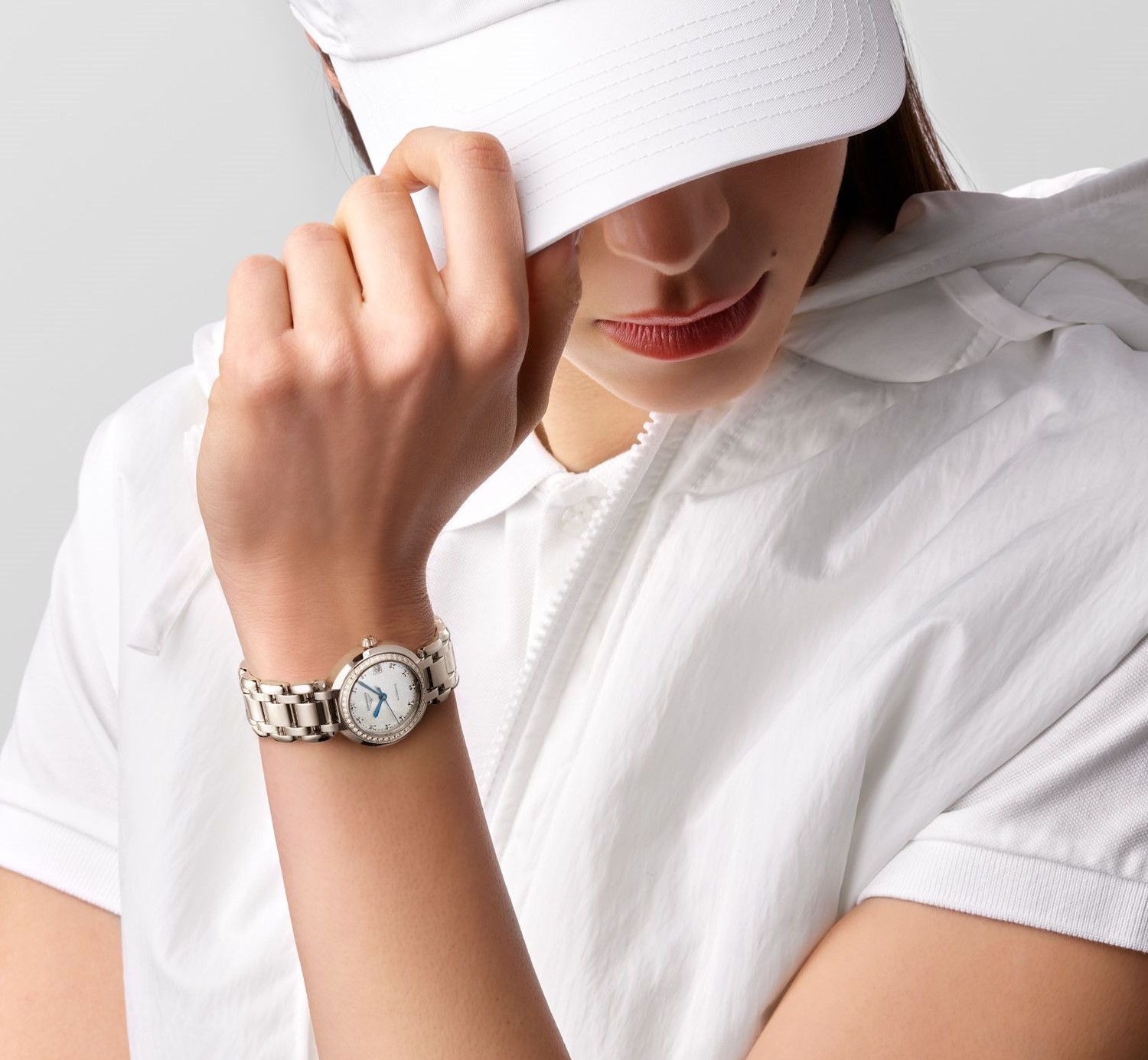 Longines PrimaLuna L8.111.0.87.6 sind Damen-Automatik-Luxusuhren im klassischen Stil mit einem Edelstahlarmband mit polierter Oberfläche und einer Schmetterlingsschließe. Das Gehäuse aus Edelstahl hat einen Durchmesser von 26,5 Millimetern und ist mit 44 Diamanten mit einem Gewicht von 0,299 ct und Reinheit IF-VVS besetzt. Das Perlmuttzifferblatt mit Datumsanzeige auf drei Uhr wird durch ein saphirglas mit Antireflexschicht geschützt. Das Zifferblatt ist mit 11 Diamanten Top Wesselton mit einem Gewicht von 0,032 ct und Reinheit VS-SI verziert, deren Schönheit besonders bei direktem Licht zur Geltung kommt, wenn man das Farbspiel des Perlmutts beobachten kann. Das Uhrwerk wird durch ein mechanisches Kaliber L592 mit automatischem Aufzug und einer Gangreserve von 45 Stunden angetrieben. Mit einer Wasserdichtigkeit von 3 ATM sind die Uhren regen- und spritzwassergeschützt.