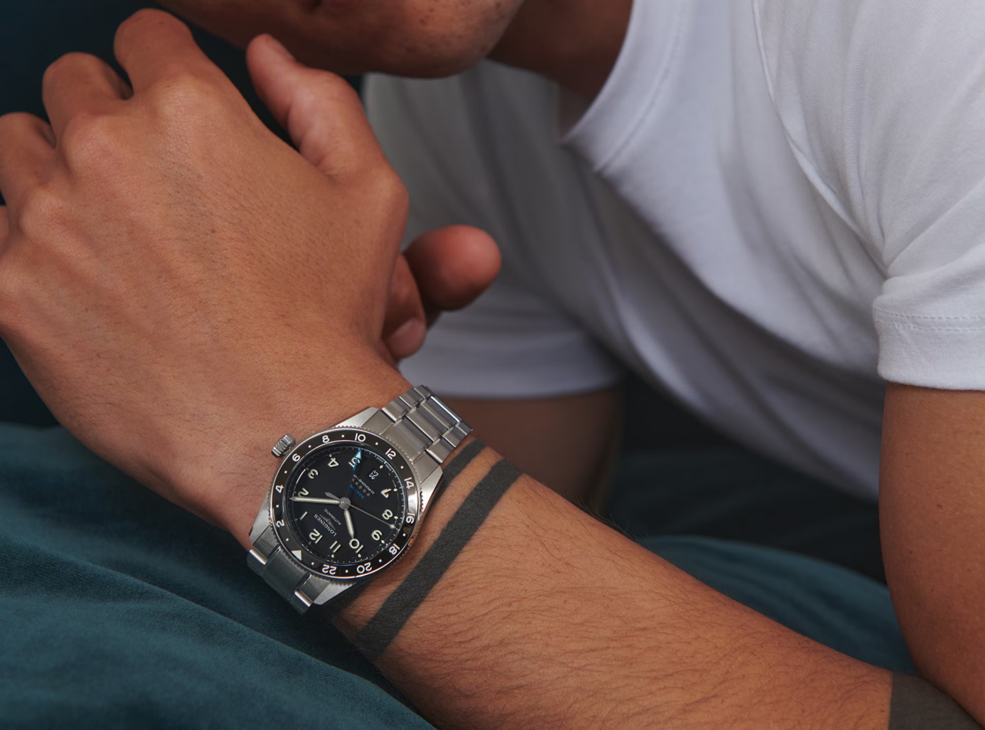 Longines Spirit Zulu Time L3.802.4.53.6 sind klassische Herren-Automatikuhr mit einem Edelstahlarmband mit Faltschließe und einem einfachen Armbandwechselsystem. Das Edelstahlgehäuse mit gebürsteter Oberfläche hat einen Durchmesser von 39 Millimetern, eine verschraubte Krone und eine GMT-Lünette mit schwarzer Keramikeinlage und 24-Stunden-Skala. Das schwarze Zifferblatt mit Datumsanzeige bei 6 Uhr und blauem GMT-Zeiger wird durch ein saphirglas mit beidseitiger Antireflexbeschichtung geschützt. Die Zeiger und Indizes sind mit einer Leuchtbeschichtung Super-LumiNova® versehen, die nach dem Aufladen perfekte Ablesbarkeit bei schlechten Lichtverhältnissen garantiert. Das Uhrwerk wird durch ein mechanisches L844.4 Uhrwerk mit automatischem Aufzug und einer Gangreserve von ca. 72 Stunden angetrieben. Dieses Uhrwerk mit Sekundenstoppfunktion beim Herausziehen der Krone in die äußerste Position, bekannt als Hacking, kann bei Bedarf auch manuell aufgezogen werden. Das Kaliber ist mit einer Siliziumspirale ausgestattet, die der Uhr eine hohe Resistenz gegen Magnetfelder verleiht. Die Uhr mit C.O.S.C.-Zertifizierung, die hohe Präzision garantiert, trägt die Bezeichnung „Chronometer“. Mit einer Wasserdichtigkeit von 10 ATM ist die Uhr für Schwimmen und Schnorcheln geeignet.