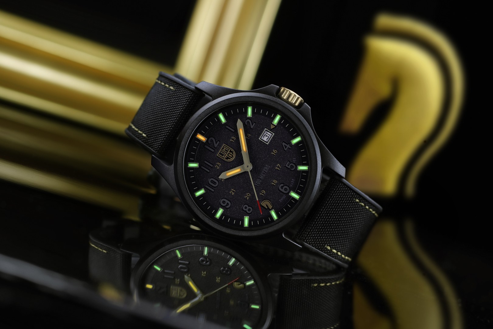 Die einzigartige Luminox Light Technology sorgt für Sichtbarkeit auf den ersten Blick - die Technologie der Luminox-Uhren gewährleistet kontinuierliches Leuchten unabhängig von den Wetterbedingungen für bis zu 25 Jahre. Always Visible bedeutet, dass das Beleuchtungssystem der Luminox Light Technology (LLT), d.h. kleine Glasröhrchen, die die Uhr beleuchten, eine Garantie für 10 Jahre Leuchten haben. Die Leuchtmittel leuchten 25 Jahre, wobei die Sichtbarkeit vom individuellen Sehvermögen, der Farbe der Röhre und dem Zustand des Uhrglases abhängt. Die meisten anderen Uhren verwenden Leuchtfarbe, die dadurch gekennzeichnet ist, dass die Lichtquelle aufgeladen werden muss und sehr schnell schwächer wird, oder ein „push-to-light“-System, bei dem ein Knopf bei batteriebetriebenen Lichtern gedrückt werden muss. Jede Luminox-Uhr enthält kleine, selbstleuchtende Mikrogaslicht-Röhrchen (Kapseln aus Borosilikatglas), die permanent leuchten. Die Kapseln sind auf den Zeigern, Indizes und bei Bedarf auch auf der Lünette platziert. Diese Licht-Röhrchen sind sicher für Mensch und Umwelt und werden in jede Uhr von Hand eingebaut. Gasförmiges Tritium, das Licht ausstrahlt, ist eine radioaktive Form von gewöhnlichem gasförmigem Wasserstoff. Gasförmiges Tritium ist innerhalb dieser kleinen Borosilikatglasröhrchen eingeschlossen und strahlt kontinuierlich Licht aus. Jedes Borosilikatglasröhrchen wird mit Laser geschnitten und versiegelt.