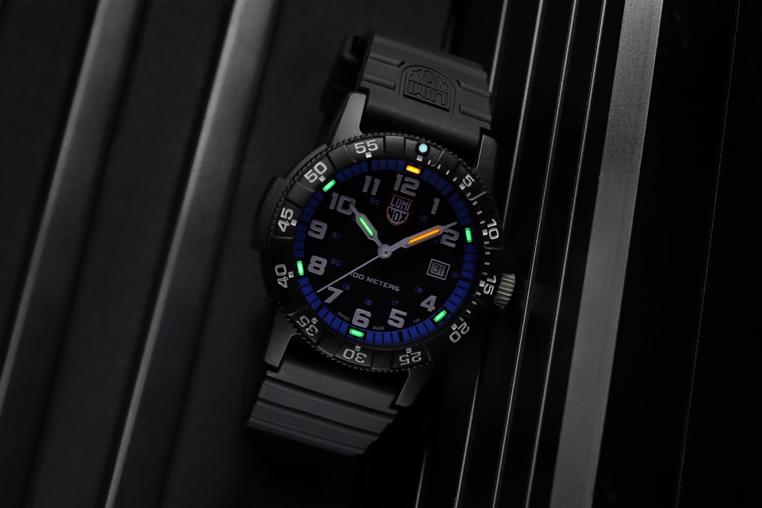 Die einzigartige Luminox Light Technology sorgt für Sichtbarkeit auf den ersten Blick - die Technologie der Luminox-Uhren gewährleistet kontinuierliches Leuchten unabhängig von den Wetterbedingungen für bis zu 25 Jahre. Always Visible bedeutet, dass das Beleuchtungssystem der Luminox Light Technology (LLT), d.h. kleine Glasröhrchen, die die Uhr beleuchten, eine Garantie für 10 Jahre Leuchten haben. Die Leuchtmittel leuchten 25 Jahre, wobei die Sichtbarkeit vom individuellen Sehvermögen, der Farbe der Röhre und dem Zustand des Uhrglases abhängt. Die meisten anderen Uhren verwenden Leuchtfarbe, die dadurch gekennzeichnet ist, dass die Lichtquelle aufgeladen werden muss und sehr schnell schwächer wird, oder ein „push-to-light“-System, bei dem ein Knopf bei batteriebetriebenen Lichtern gedrückt werden muss. Jede Luminox-Uhr enthält kleine, selbstleuchtende Mikrogaslicht-Röhrchen (Kapseln aus Borosilikatglas), die permanent leuchten. Die Kapseln sind auf den Zeigern, Indizes und bei Bedarf auch auf der Lünette platziert. Diese Licht-Röhrchen sind sicher für Mensch und Umwelt und werden in jede Uhr von Hand eingebaut. Gasförmiges Tritium, das Licht ausstrahlt, ist eine radioaktive Form von gewöhnlichem gasförmigem Wasserstoff. Gasförmiges Tritium ist innerhalb dieser kleinen Borosilikatglasröhrchen eingeschlossen und strahlt kontinuierlich Licht aus. Jedes Borosilikatglasröhrchen wird mit Laser geschnitten und versiegelt.