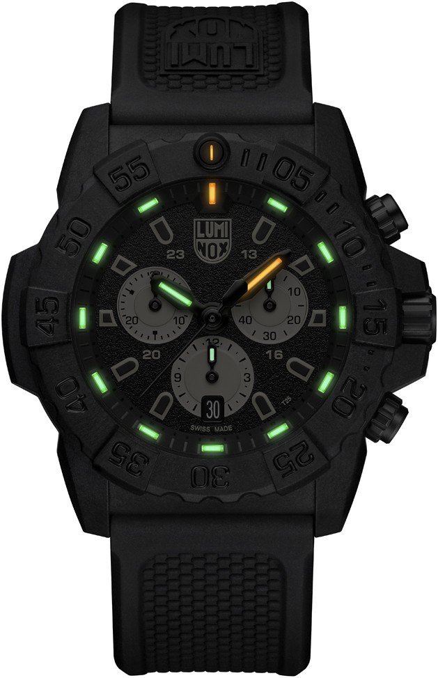 Die einzigartige Luminox Light Technology sorgt für Sichtbarkeit auf den ersten Blick - die Technologie der Luminox-Uhren gewährleistet kontinuierliches Leuchten unabhängig von den Wetterbedingungen für bis zu 25 Jahre. Always Visible bedeutet, dass das Beleuchtungssystem der Luminox Light Technology (LLT), d.h. kleine Glasröhrchen, die die Uhr beleuchten, eine Garantie für 10 Jahre Leuchten haben. Die Leuchtmittel leuchten 25 Jahre, wobei die Sichtbarkeit vom individuellen Sehvermögen, der Farbe der Röhre und dem Zustand des Uhrglases abhängt. Die meisten anderen Uhren verwenden Leuchtfarbe, die dadurch gekennzeichnet ist, dass die Lichtquelle aufgeladen werden muss und sehr schnell schwächer wird, oder ein „push-to-light“-System, bei dem ein Knopf bei batteriebetriebenen Lichtern gedrückt werden muss. Jede Luminox-Uhr enthält kleine, selbstleuchtende Mikrogaslicht-Röhrchen (Kapseln aus Borosilikatglas), die permanent leuchten. Die Kapseln sind auf den Zeigern, Indizes und bei Bedarf auch auf der Lünette platziert. Diese Licht-Röhrchen sind sicher für Mensch und Umwelt und werden in jede Uhr von Hand eingebaut. Gasförmiges Tritium, das Licht ausstrahlt, ist eine radioaktive Form von gewöhnlichem gasförmigem Wasserstoff. Gasförmiges Tritium ist innerhalb dieser kleinen Borosilikatglasröhrchen eingeschlossen und strahlt kontinuierlich Licht aus. Jedes Borosilikatglasröhrchen wird mit Laser geschnitten und versiegelt.