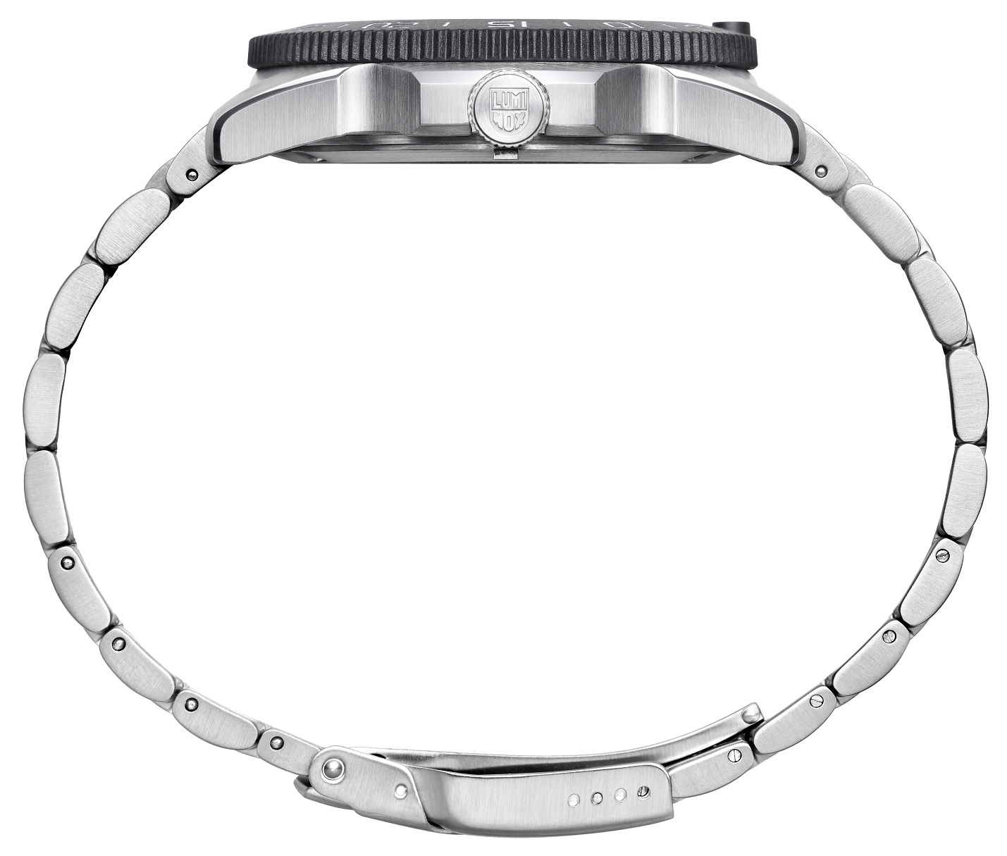 Luminox Pacific Diver 3120 Series XS.3123 sind Herren-Quarzuhren im klassischen Stil mit einem Stahlarmband und einer Faltschließe. Das Gehäuse aus Edelstahl hat einen Durchmesser von 44 Millimetern, eine einseitig drehbare Lünette aus Carbon-Verbundwerkstoff CARBONOX™ und eine verschraubte Krone. Das blaue Zifferblatt mit Sonnenschliff-Effekt und Datumsanzeige auf der Drei-Uhr-Position wird durch ein widerstandsfähiges Saphirglas mit Antireflexbeschichtung geschützt. Die Zeiger, Indizes und der Punkt auf der Lünette sind mit einem LLT-Leuchtanstrich versehen, der nach Beleuchtung die Lesbarkeit bei schlechten Lichtverhältnissen erleichtert. Das Uhrwerk wird von einem Schweizer Quarzwerk Ronda 515 mit einer Genauigkeit von -10/+20 Sekunden pro Monat angetrieben. Mit einer Wasserdichtigkeit von 20 ATM sind die Uhren für das Tiefseetauchen geeignet.