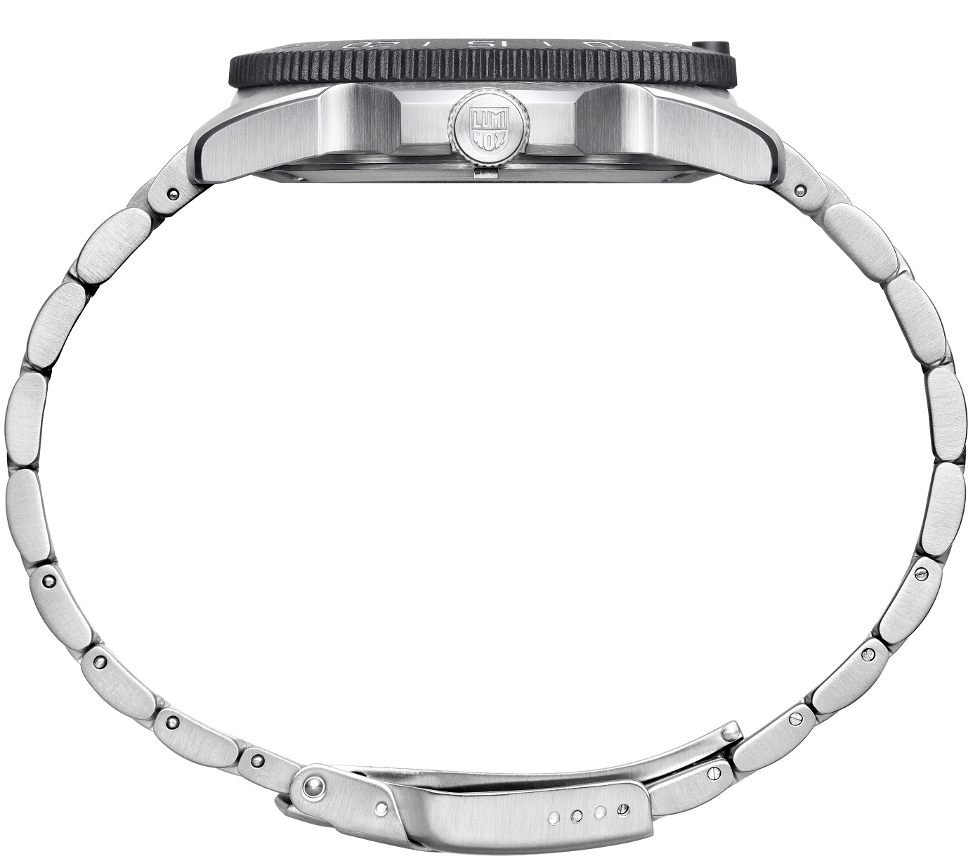 Luminox Pacific Diver 3120 Series XS.3137 sind Herren-Quarzuhren im klassischen Stil mit einem Stahlarmband mit Faltschließe. Das Edelstahlgehäuse hat einen Durchmesser von 44 Millimetern, eine einseitig drehbare Lünette aus CARBONOX™-Kohlefaserverbund und eine verschraubte Krone. Das grüne Zifferblatt mit Sonnenschliff-Effekt und Datumsanzeige auf der Drei-Uhr-Position wird durch ein robustes Saphirglas mit Antireflexbeschichtung geschützt. Die Zeiger, Indizes und der Punkt auf der Lünette sind mit einem LLT-Leuchtanstrich versehen, der nach Beleuchtung die Lesbarkeit bei schlechten Lichtverhältnissen erleichtert. Das Uhrwerk wird von einem Schweizer Quarzwerk Ronda 515 mit einer Genauigkeit von -10/+20 Sekunden pro Monat angetrieben. Mit einer Wasserdichtigkeit von 20 ATM ist die Uhr für das Tieftauchen geeignet.